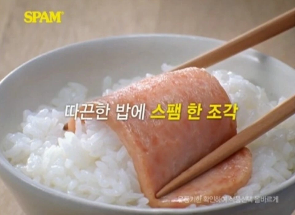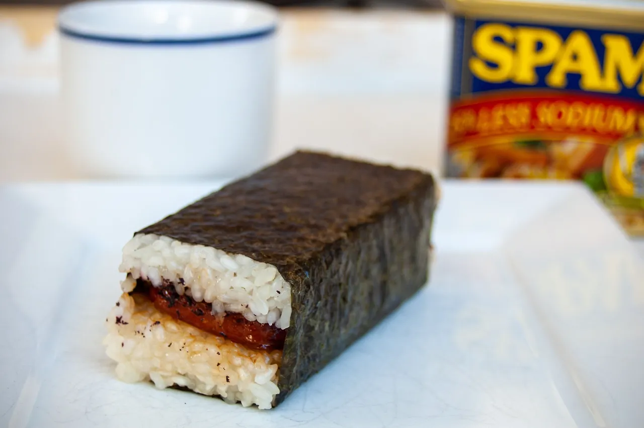 태평양 전쟁 당시 끝까지 미군을 괴롭혔던 일본 오키나와는 패망 후 미군기지가 주둔하게 되었고, 한국과 마찬가지로 미군에서 흘러나온 스팸은 근처에서 스팸 주먹밥(아래 사진 왼쪽)으로 만들어졌다. 전쟁 이후 일본인들이 많이 이주한 하와이에서는 주먹밥과 초밥에 영향을 받은 스팸 무스비(아래 사진 오른쪽)를 만들어 팔면서 생계를 이어나갔다고 한다. 하와이 출신인 오바마 미국 전 대통령도 좋아했던 음식으로 알려져 있다. 즉, 미국 혹은 미군을 상징하는 스팸은 전쟁과 함께 퍼져나가 동아시아의 로컬푸드로 변화되어 왔다.