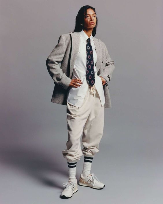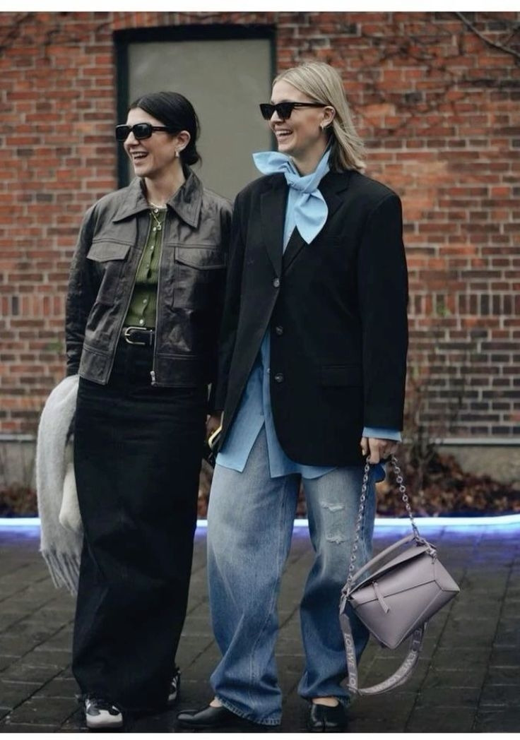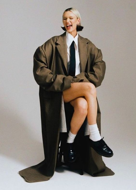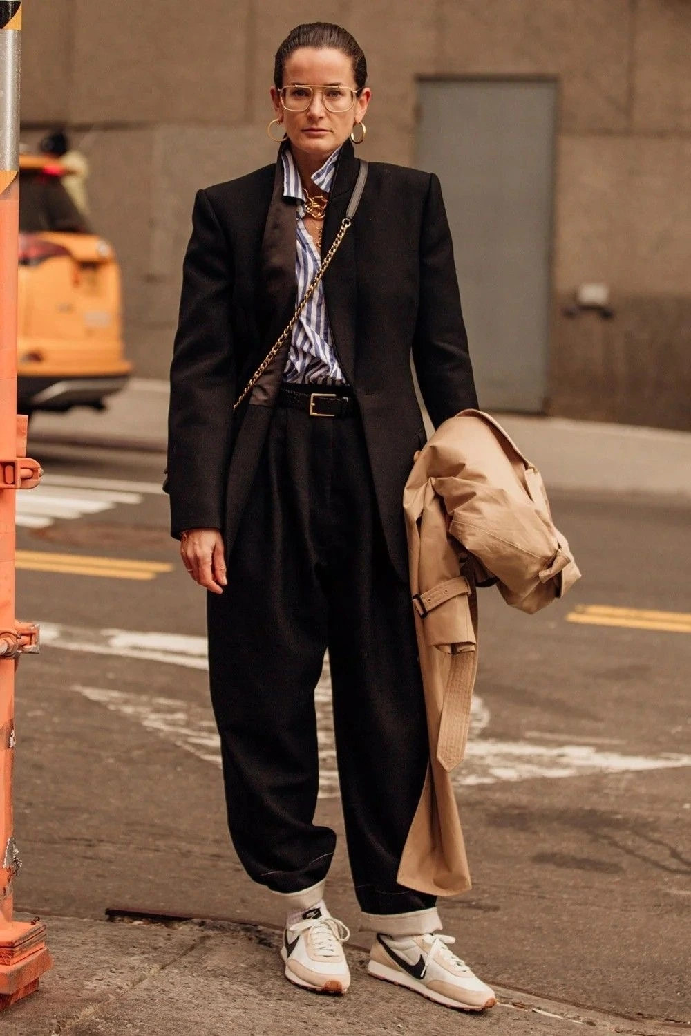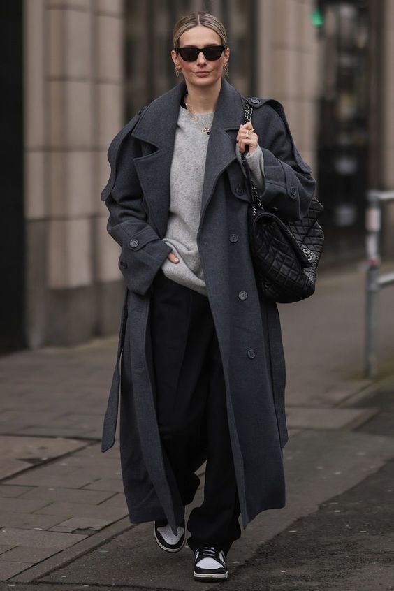 다 잠겄을 때 한 벌의 구조적인 실루엣이 아주 시크할 수 있다.