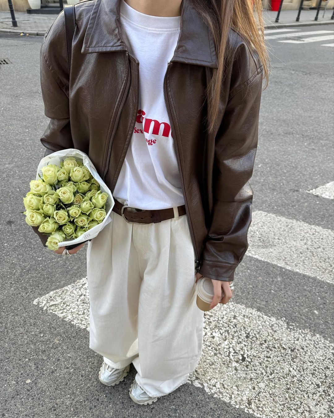 벨트로 허리사이즈를 조절하고, 상의의 큰 느낌의 시선을 벨트로 분산시킨다.
