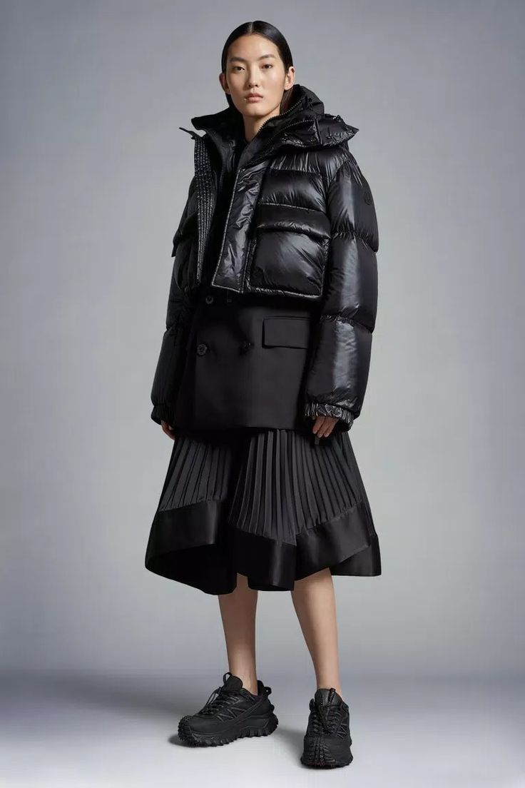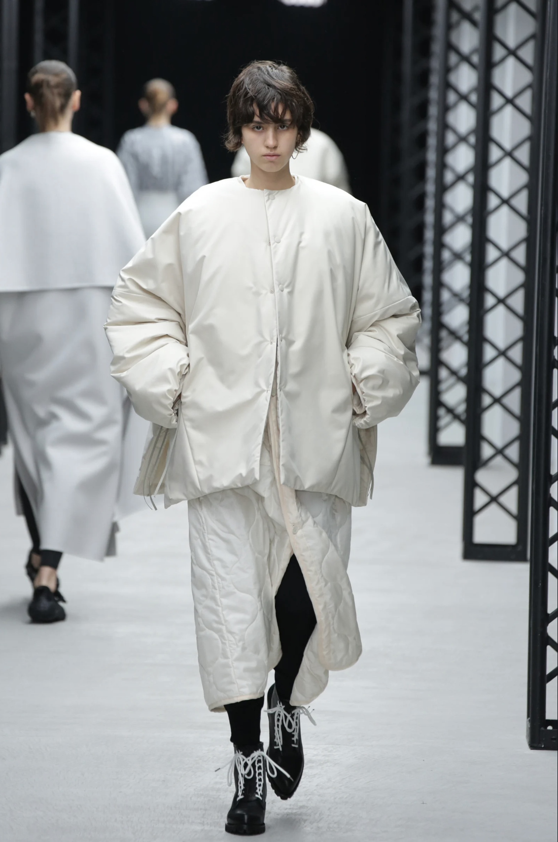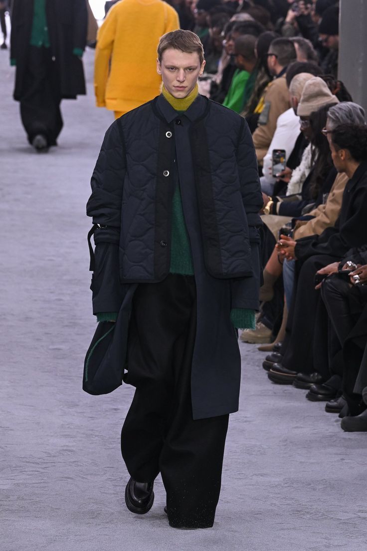 사카이 Sacai 는 코트와 함께 겹쳐진 퀼팅 패딩을 다듬었다.