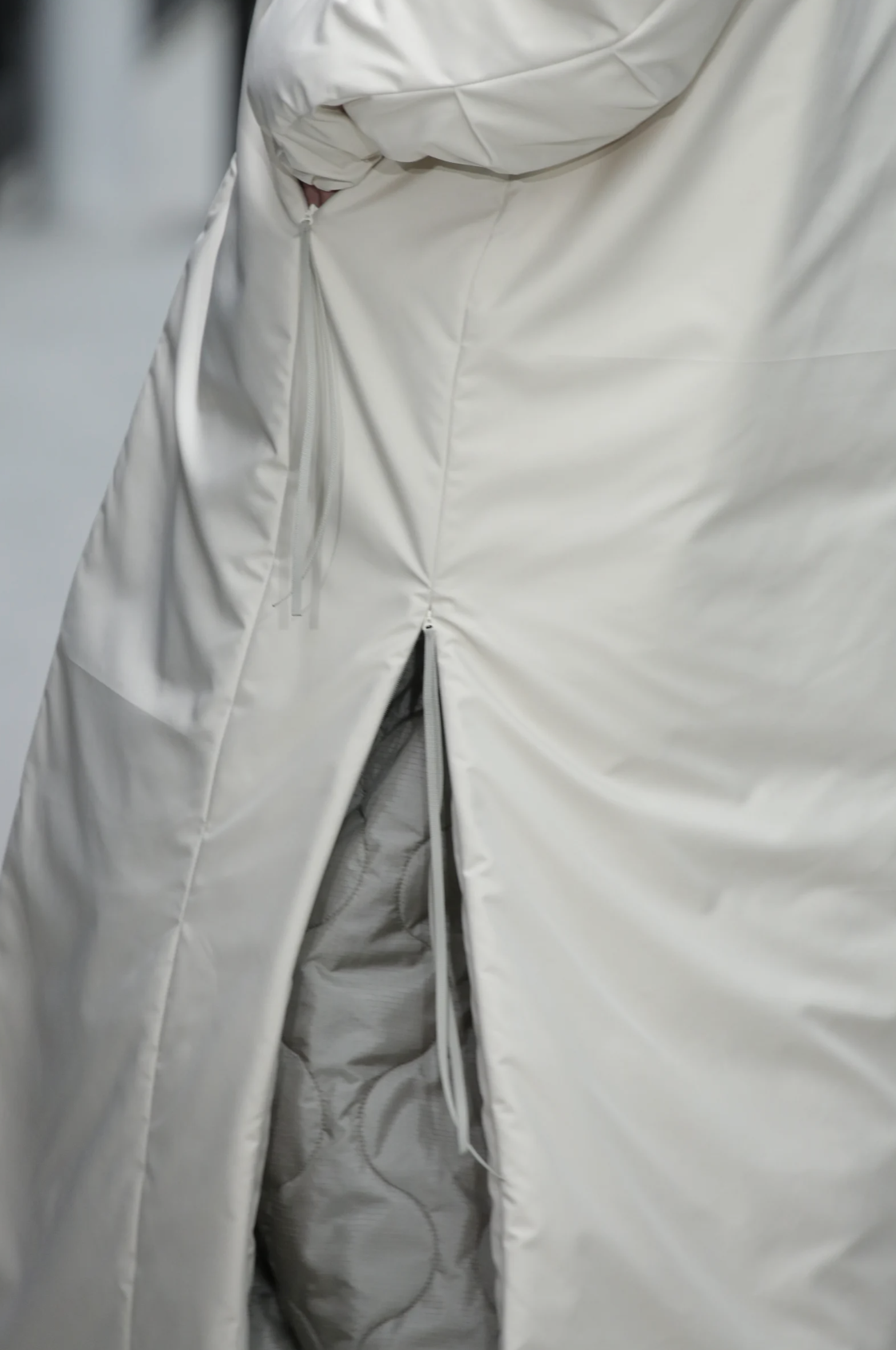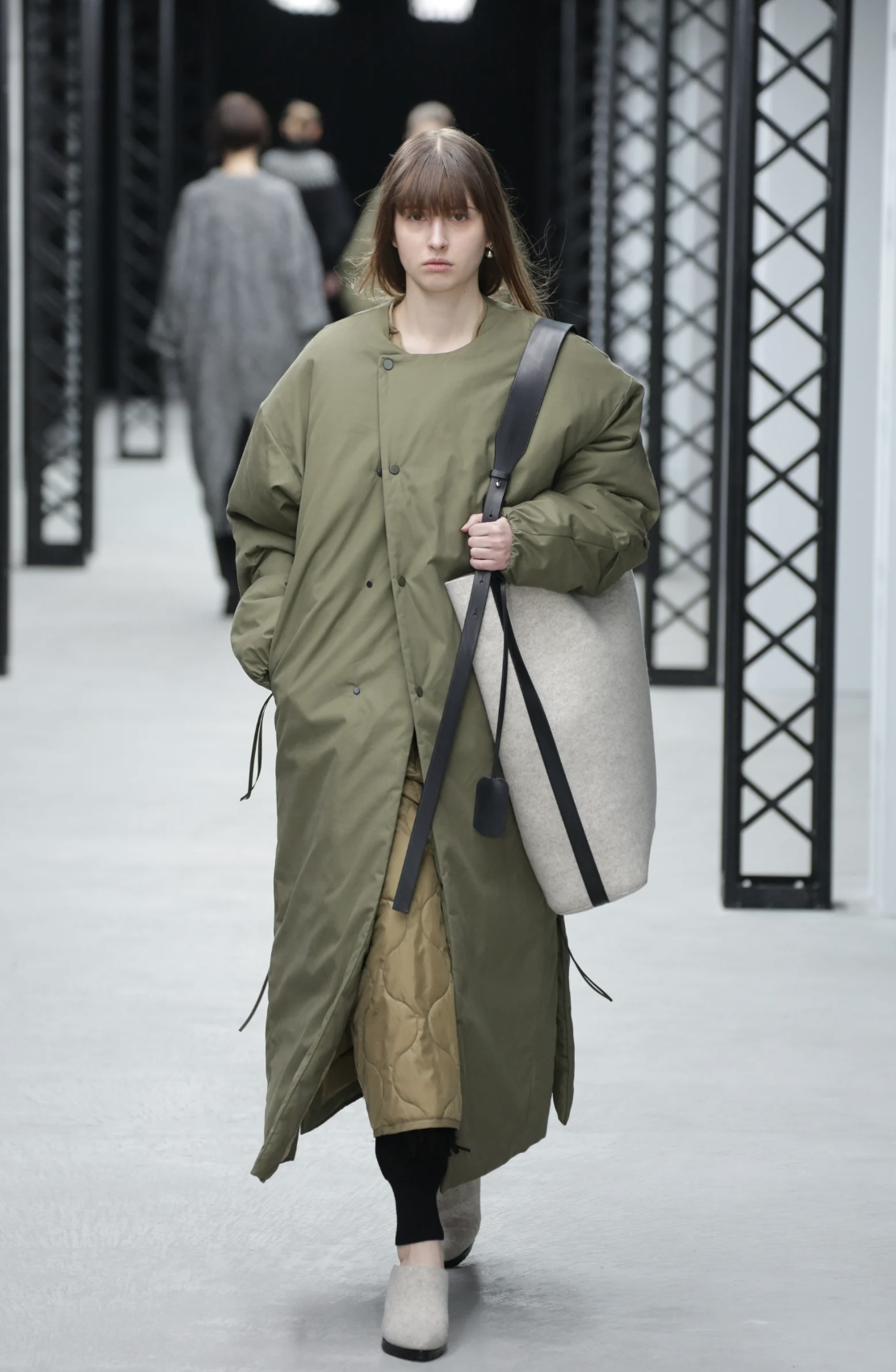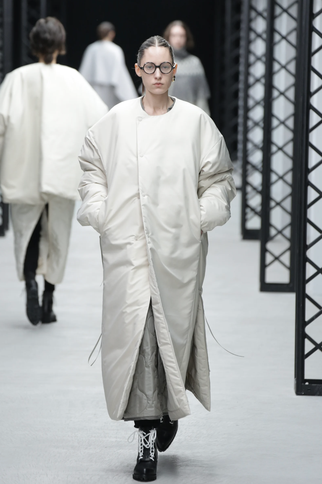 사카이 Sacai 는 코트와 함께 겹쳐진 퀼팅 패딩을 다듬었다.