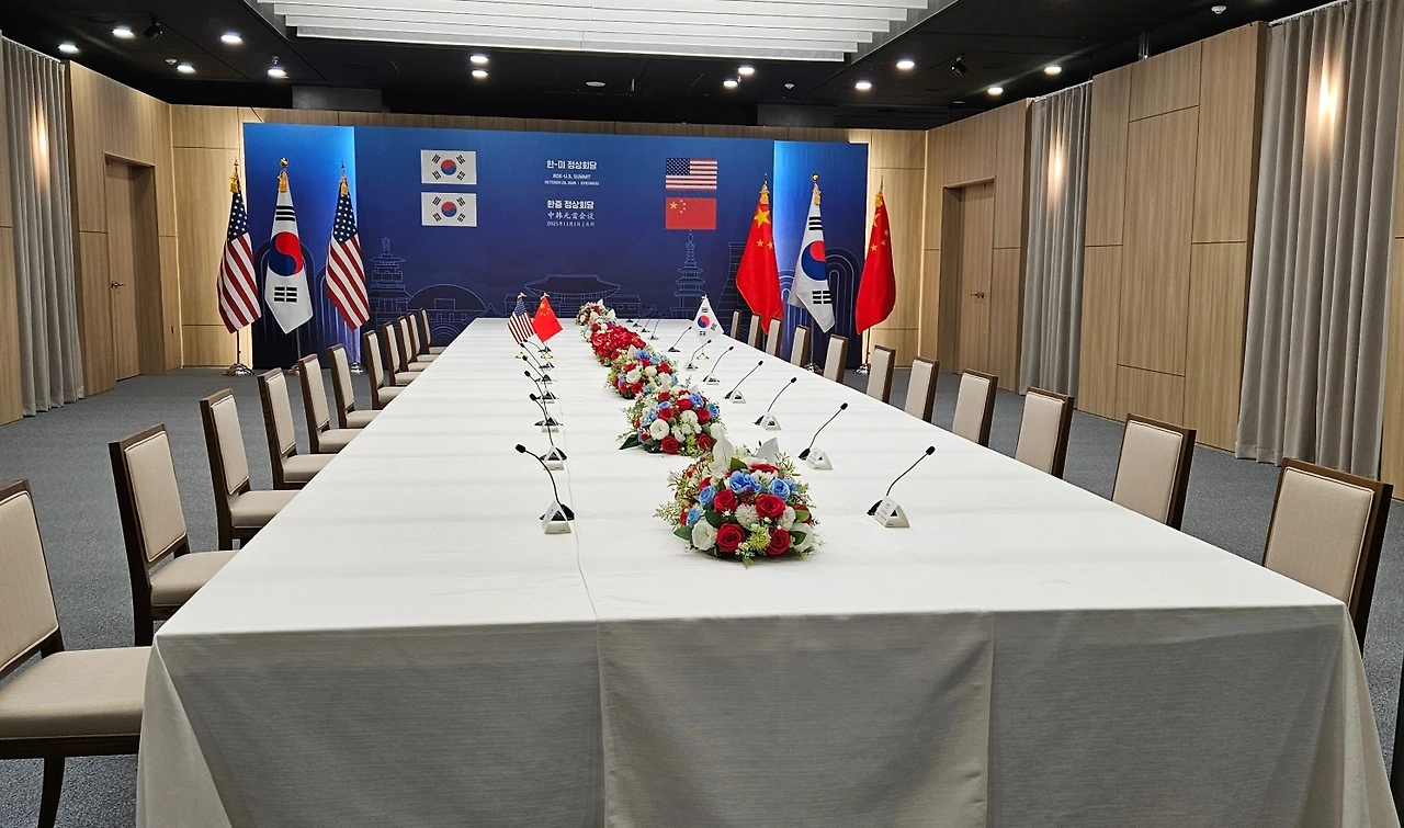 나도 잠시 그 자리에 서서 정상회담 테이블 앞에서 악수를 건네보았다.