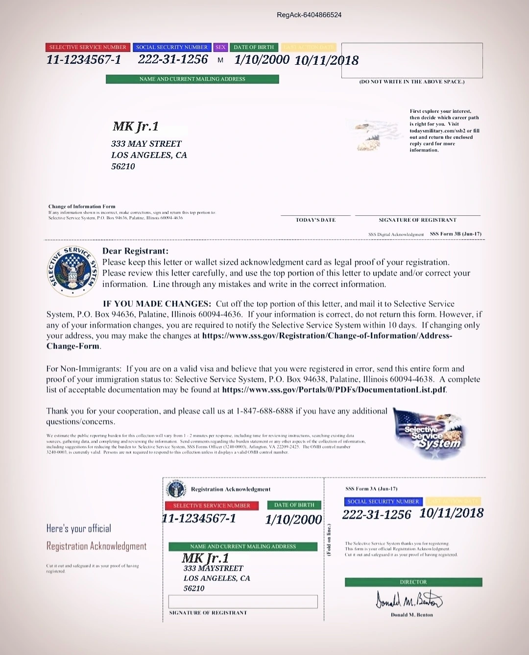 Selective Service 등록했다는 증서