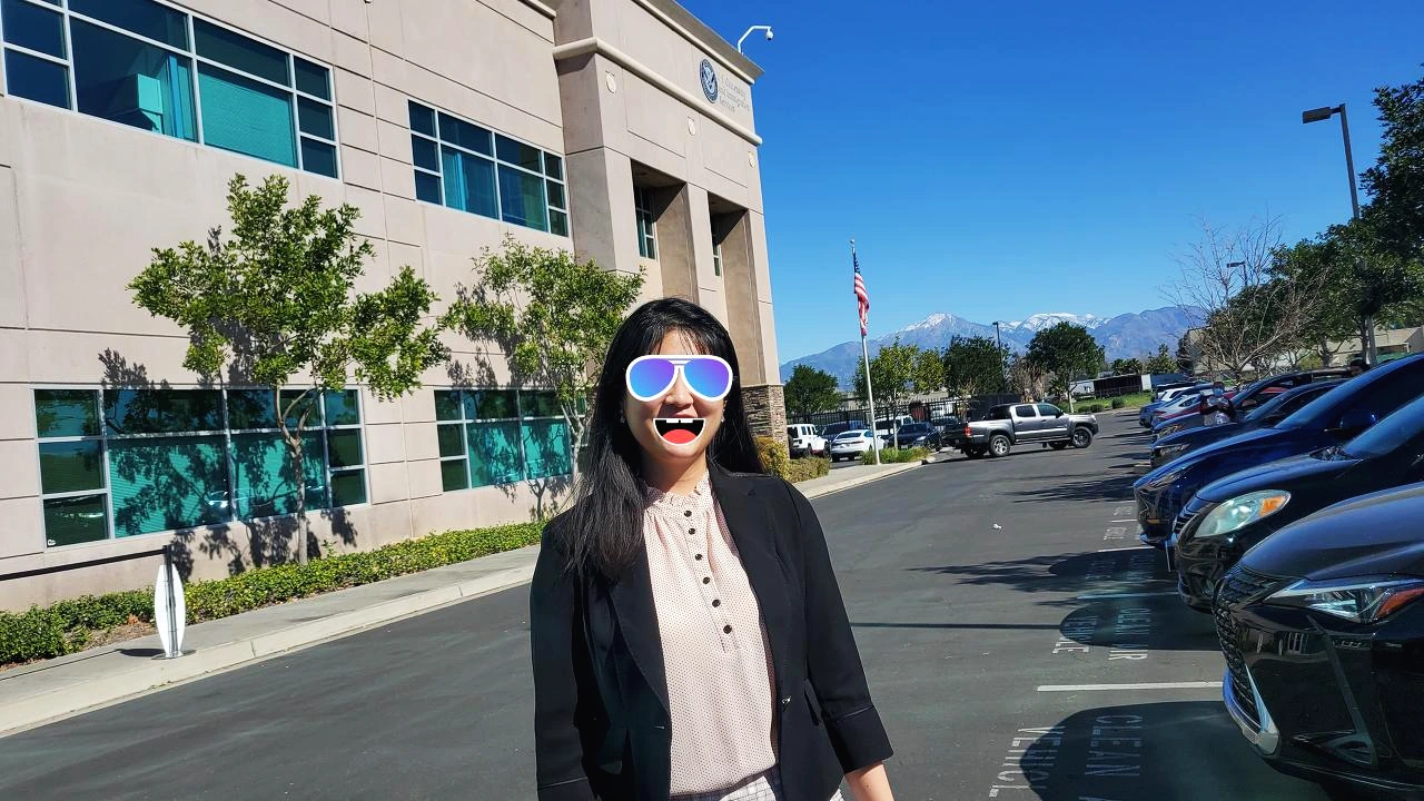 인터뷰와 선서식까지 마치고 나온 MK Jr.2가 이민국 앞에서 환하게 웃고 있다