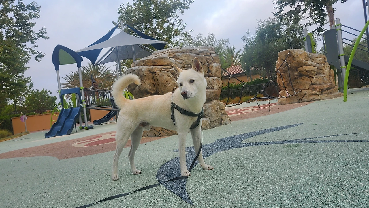 가끔 가슴 줄 없이 맘껏 밖에서 놀고 싶어 하는 태극이를 위해 문이 설치되어 있는 놀이터에 방문할 때도 있다.