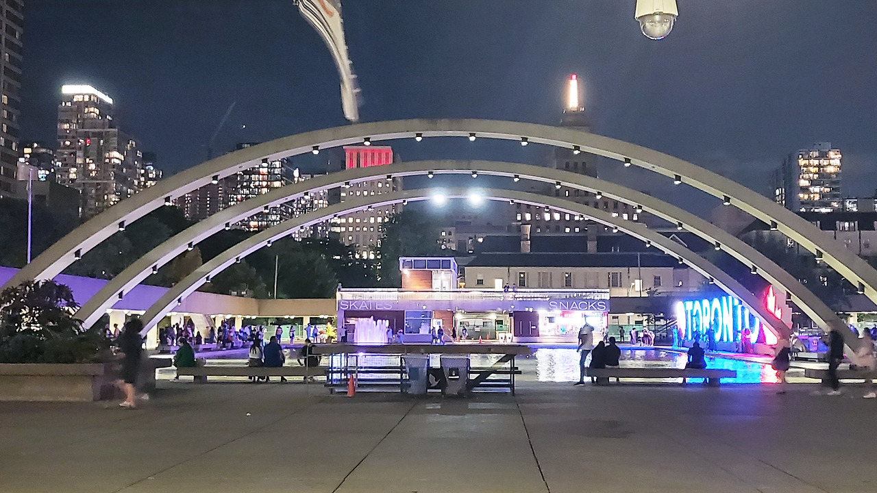 관광객과 시민들이 가장 좋아하는 장소인 토론토 시청 앞 역시 밤에도 화려한 조명 속에 그 멋짐을 자랑하는 중이다.
