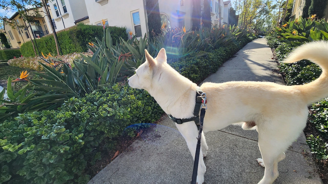 날씨와 무관하게 밖에 나가는 게 무조건 행복하고 즐거운 태극이는 거리에 가득 핀 꽃들 옆을 지니면 더 행복할까요?