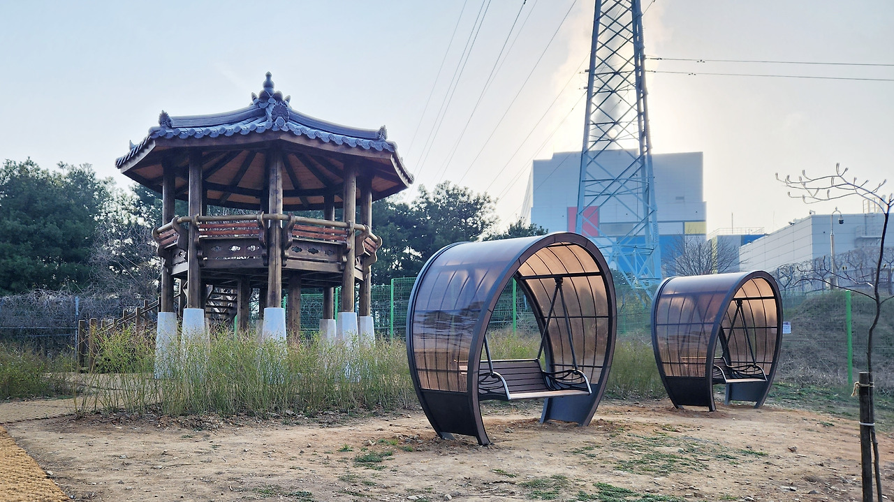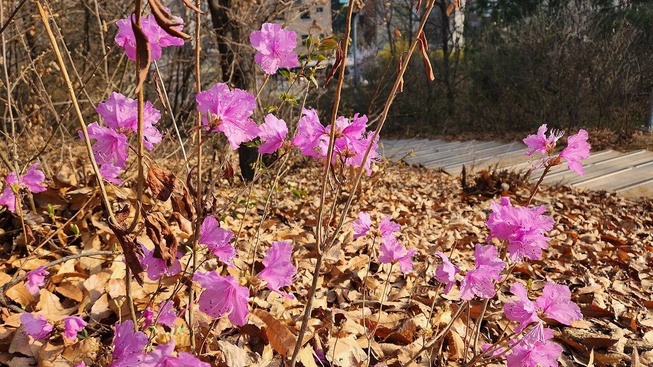 산책로 양 옆으로 나란히 줄지어 서 있고