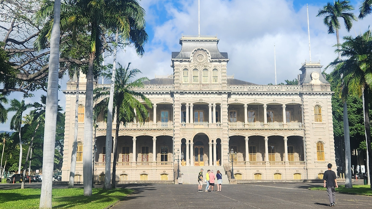 이곳은 국립 사적지이자 미국에 하나뿐인 왕족의 거처로 다운타운 호놀룰루에 위치해 있고, 1882년부터 1893년까지 하와이 왕국의 마지막 두 왕인 칼라카우아 왕과 그의 여동생이자 후계자, 릴리우오 칼라니 여왕이 살던 공식 왕궁입니다.