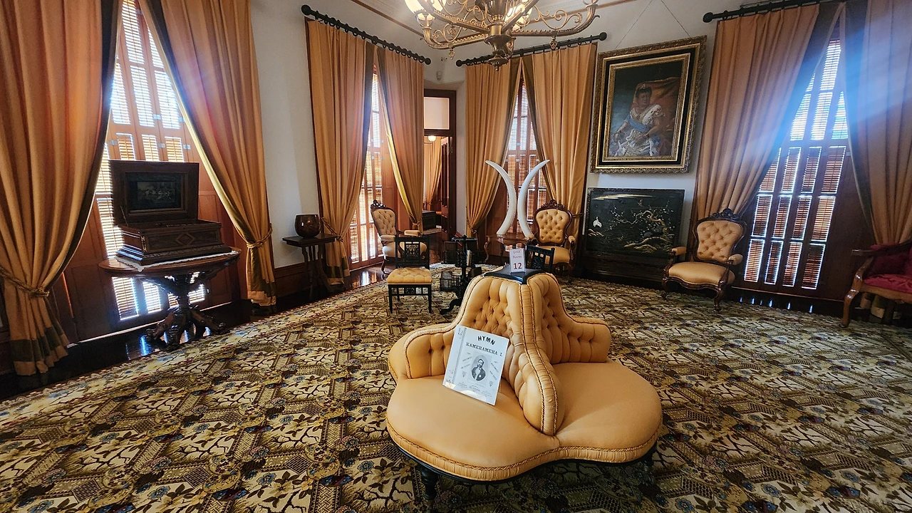 신분에 상관없이 모두가 이용했다는 코아나무로 만든 아름다운 계단, 하와이 왕족의 훌륭한 초상화, 유럽에 직접 주문해서 만든 화려한 가구, 최초로 세계 각국을 여행하며 받은 선물 및 장식품이 전시된 아름다운 실내 공간을 감상할 수 있습니다.