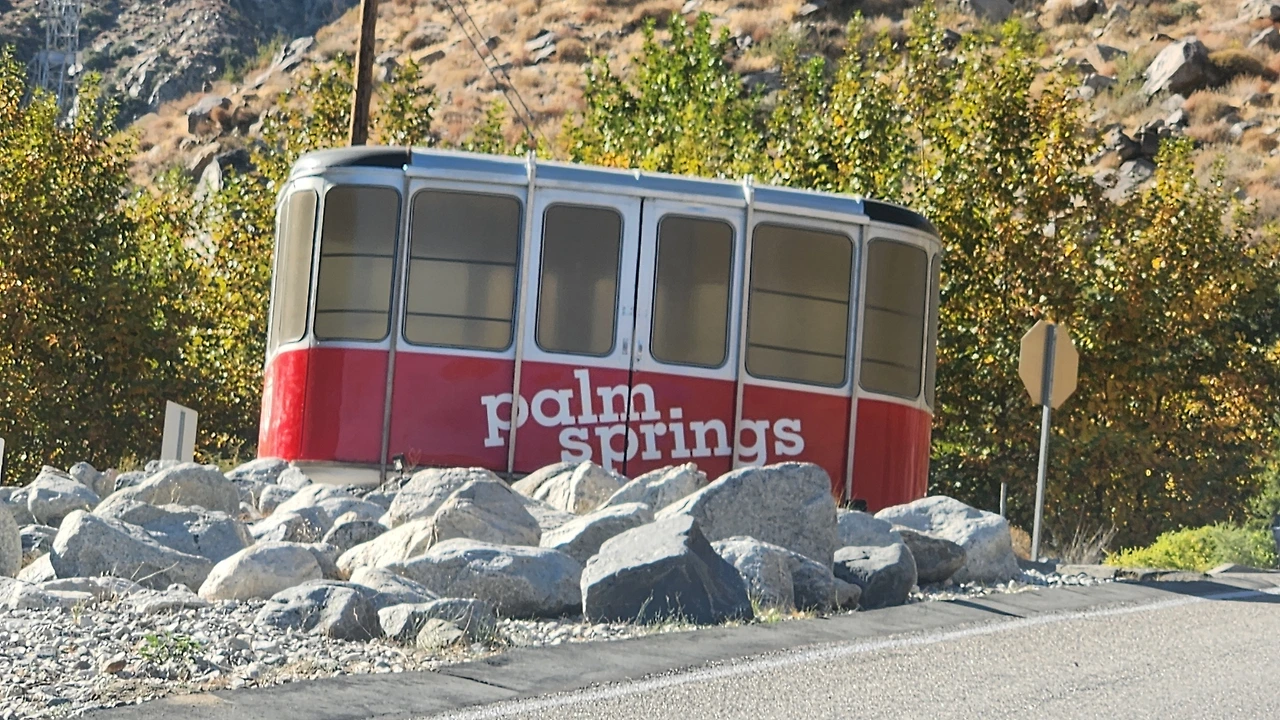 주차장 옆에는 과거에 사용했던 케이블카가 전시되어 있습니다.