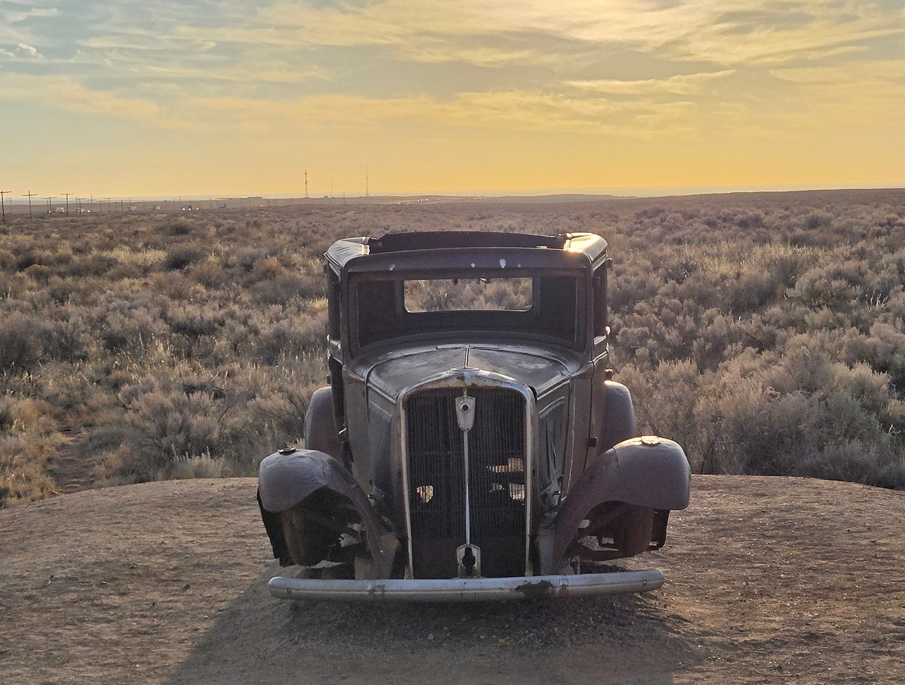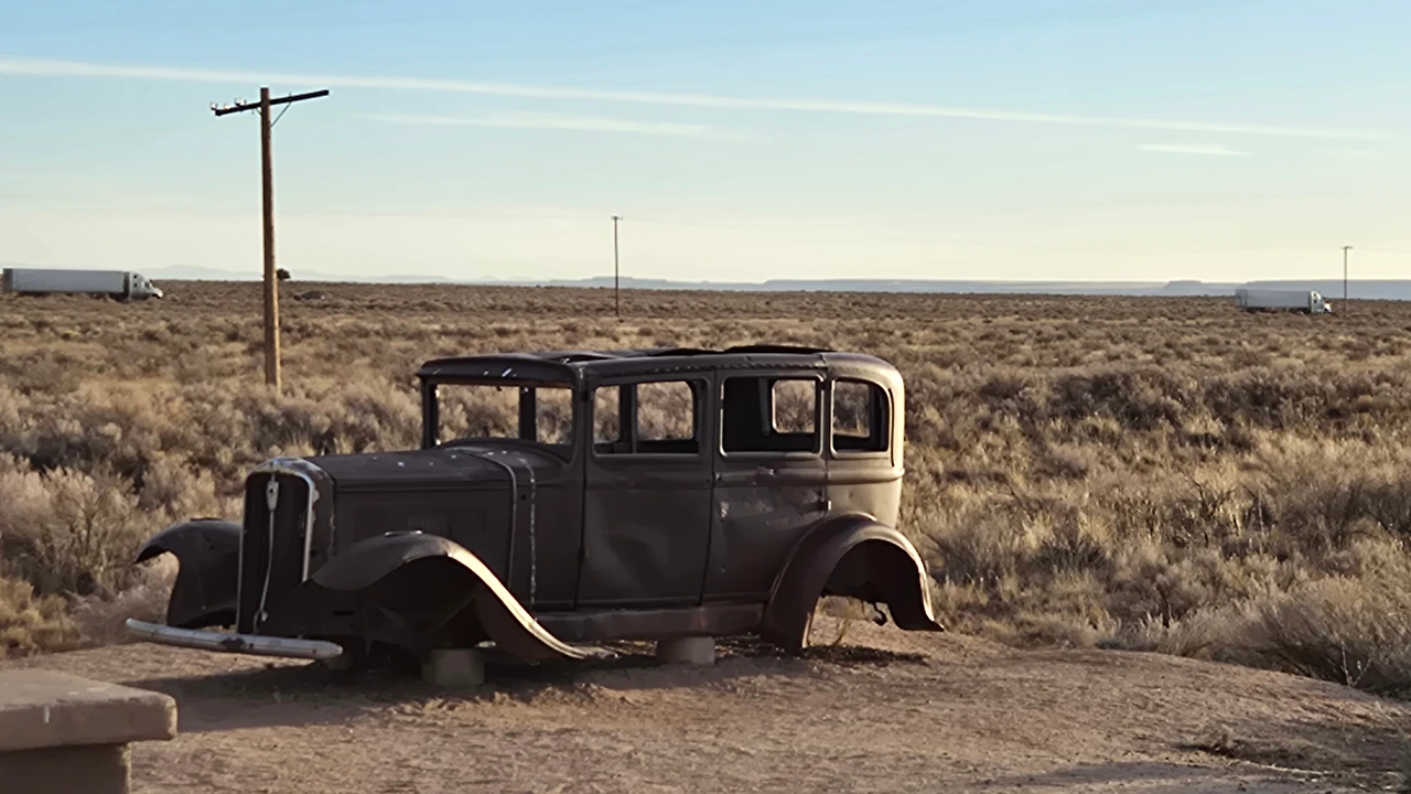 시카고에서 LA까지 동부와 서부를 최초로 연결했던 'ROUTE 66' 도로의 일부가 낡은 자동차 뒤로 보입니다.