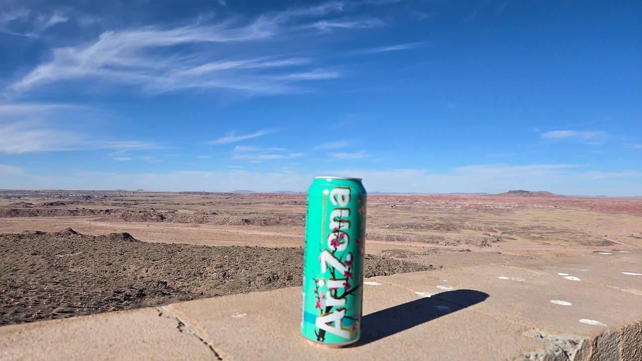 우연히도 제가 방문한 주와 같은 이름의 음료를 손에 들고 있기에 드넓은 사막을 배경으로 재미있는 사진 한 컷을 남겨보았습니다.