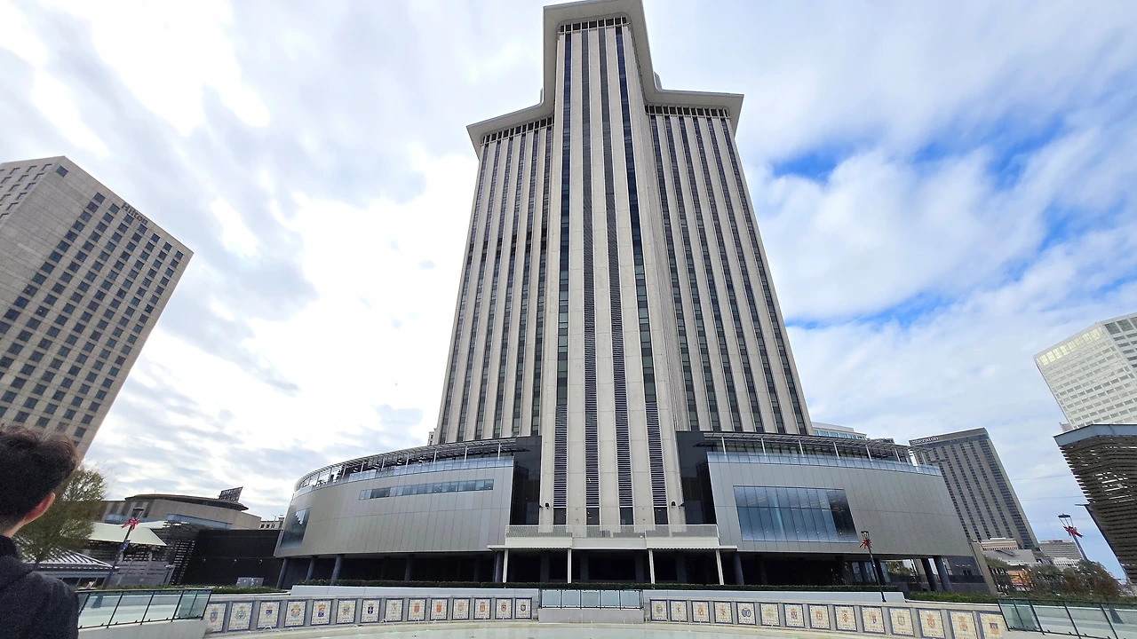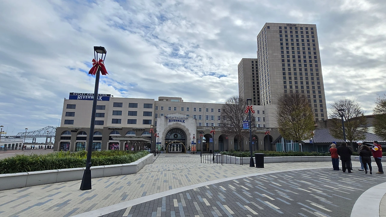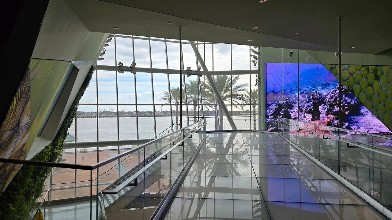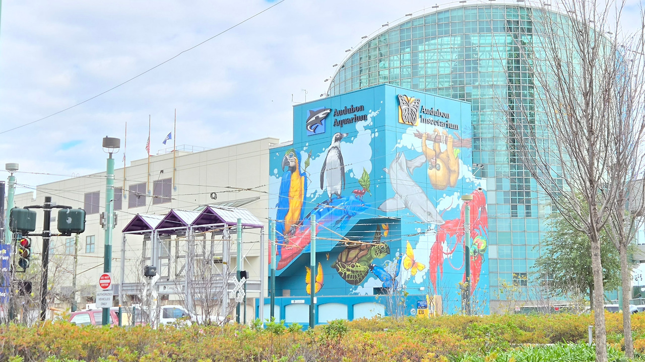 미시시피 강 앞에 위치했고 화려한 자태를 뽐내며 아쿠아리움 건물이 나타났습니다.
