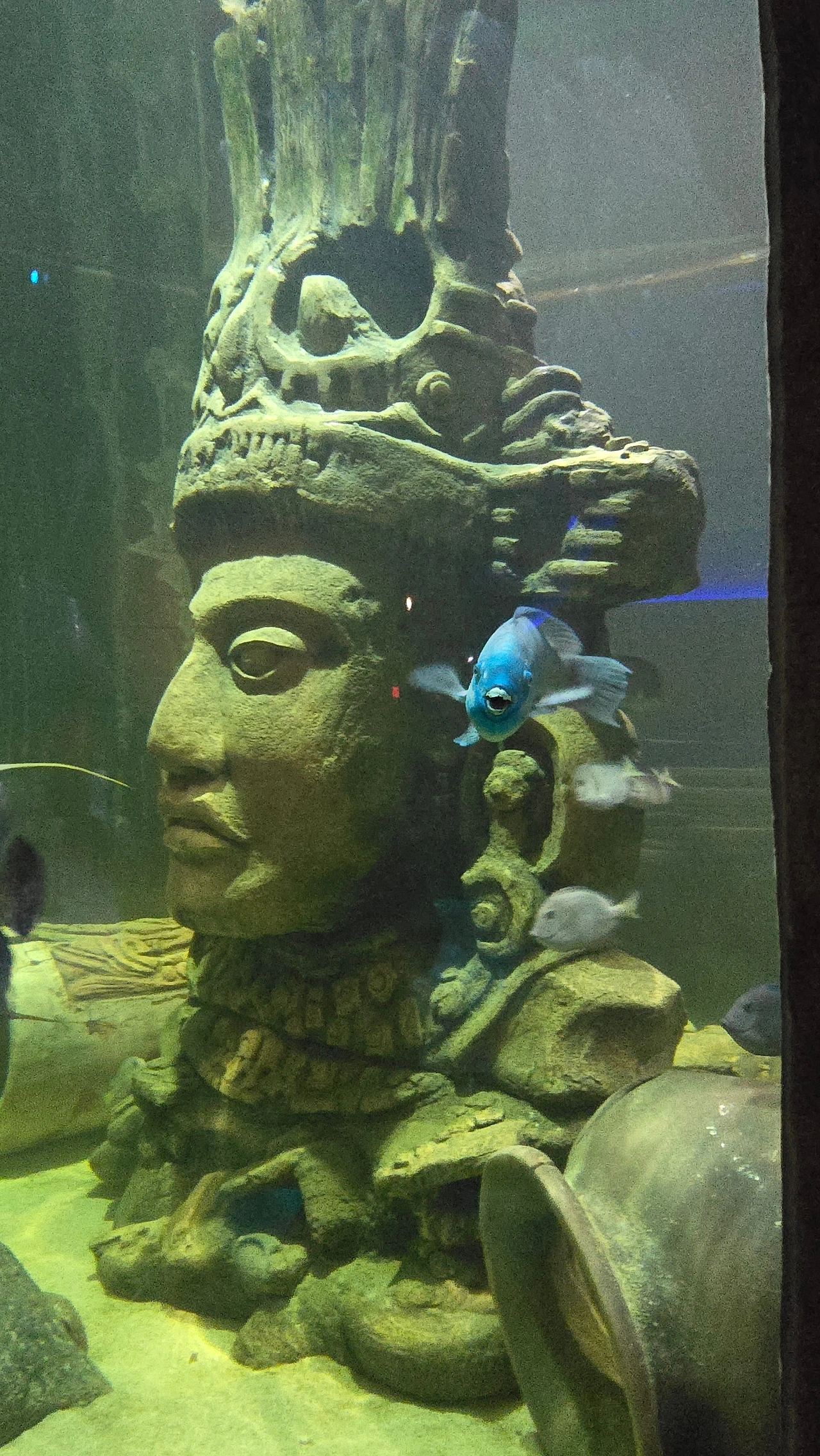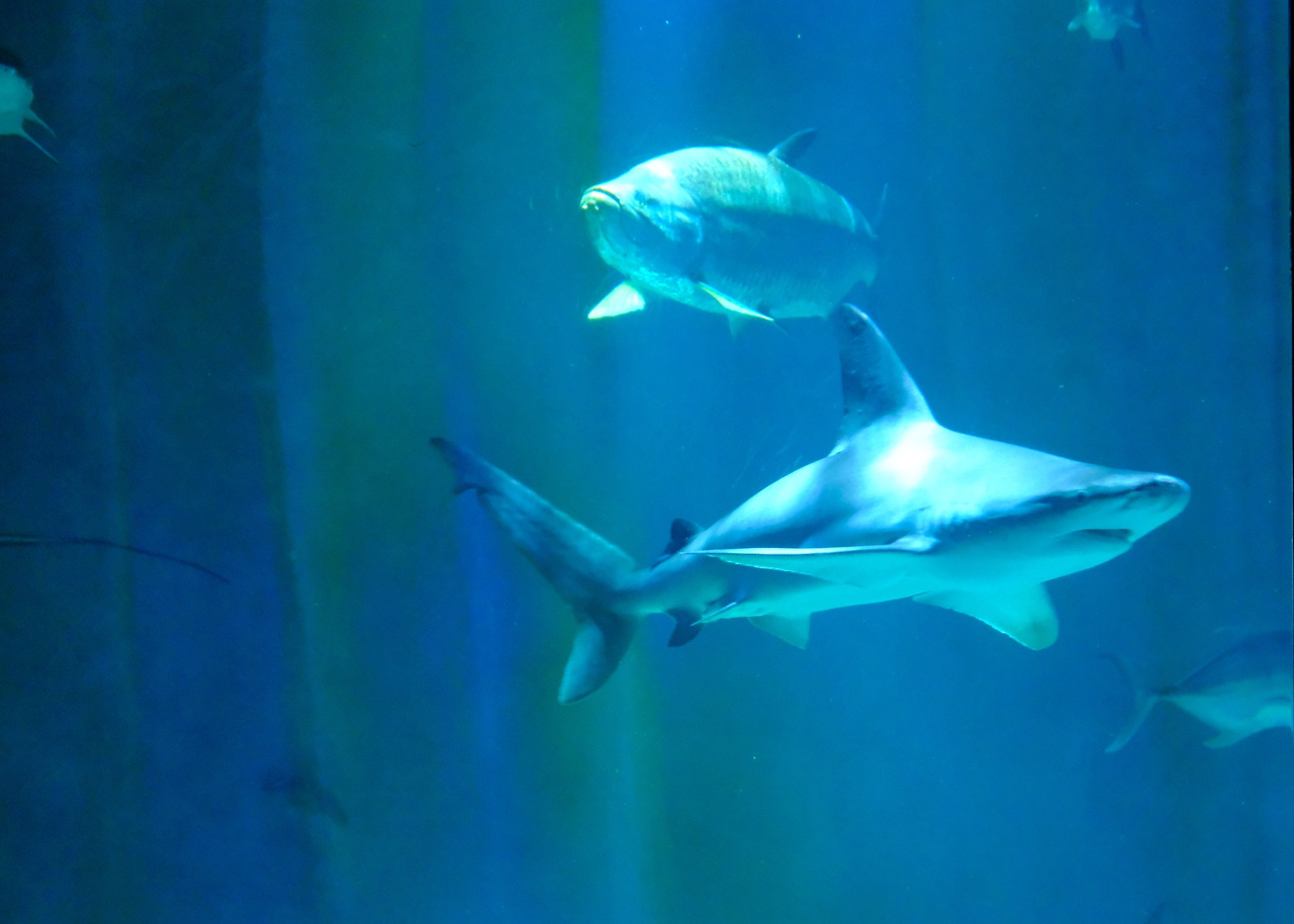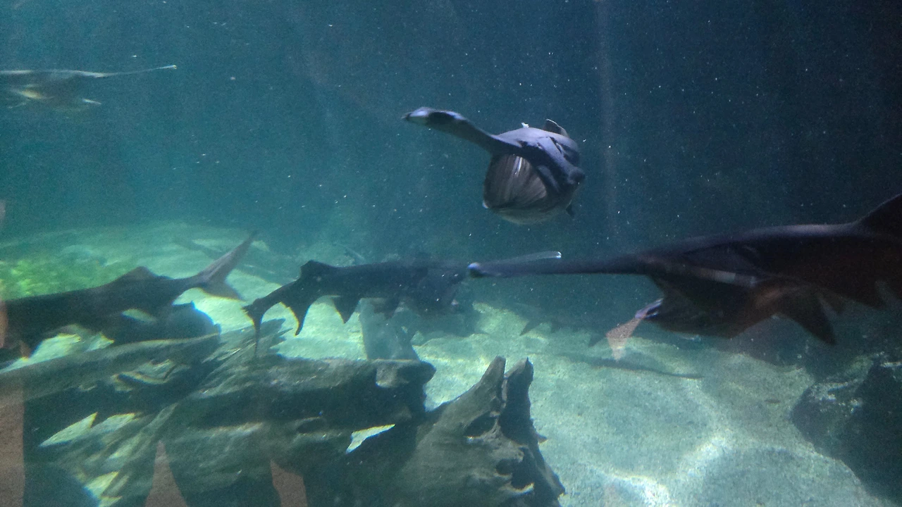다양한 종류의 어류들이 있고 파란색의 랍스터와 인근 지역에만 사는 Paddlefish들은 입을 크게 벌린 채 수영하기 바쁩니다. 1/3 이상이 패들모양의 긴 입(snout)이 특징인데 몸길이가 2m까지 자란다고 합니다.