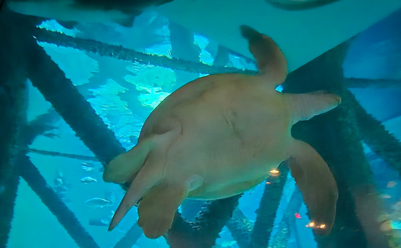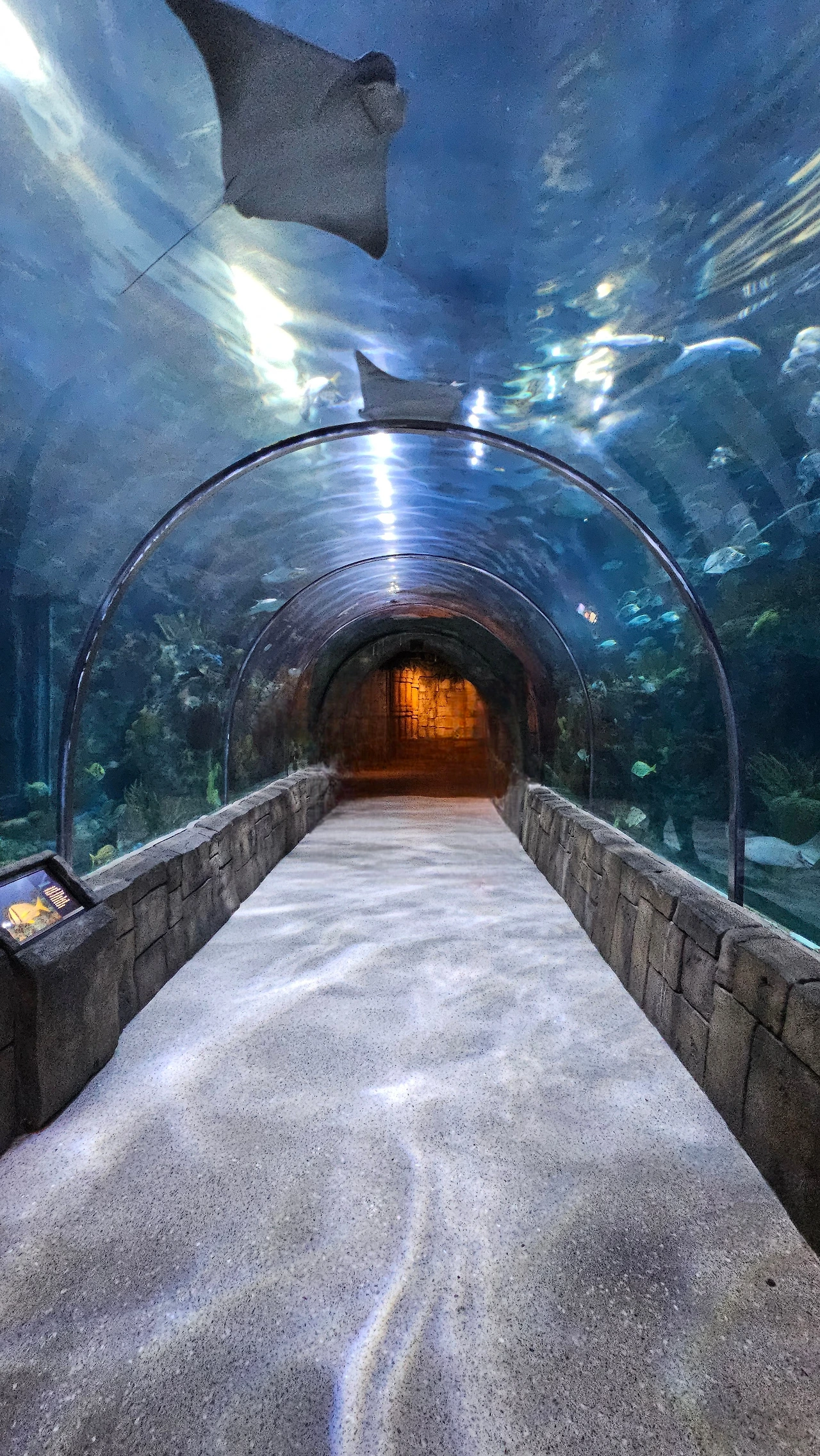수족관의 하이라이트는 바로 터널을 지나며 머리 위로 지나가는 바다생물들을 관찰하는 것이죠.