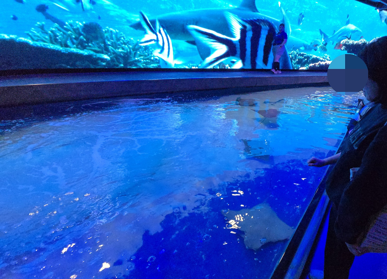 아이들 뿐 아니라 어른들도 수조 가까이에 빙 둘러 서서 가까이 다가오는 가오리들의 등을 손가락 두 개를 이용해 느껴볼 수 있어 문전성시를 이루는 곳입니다.