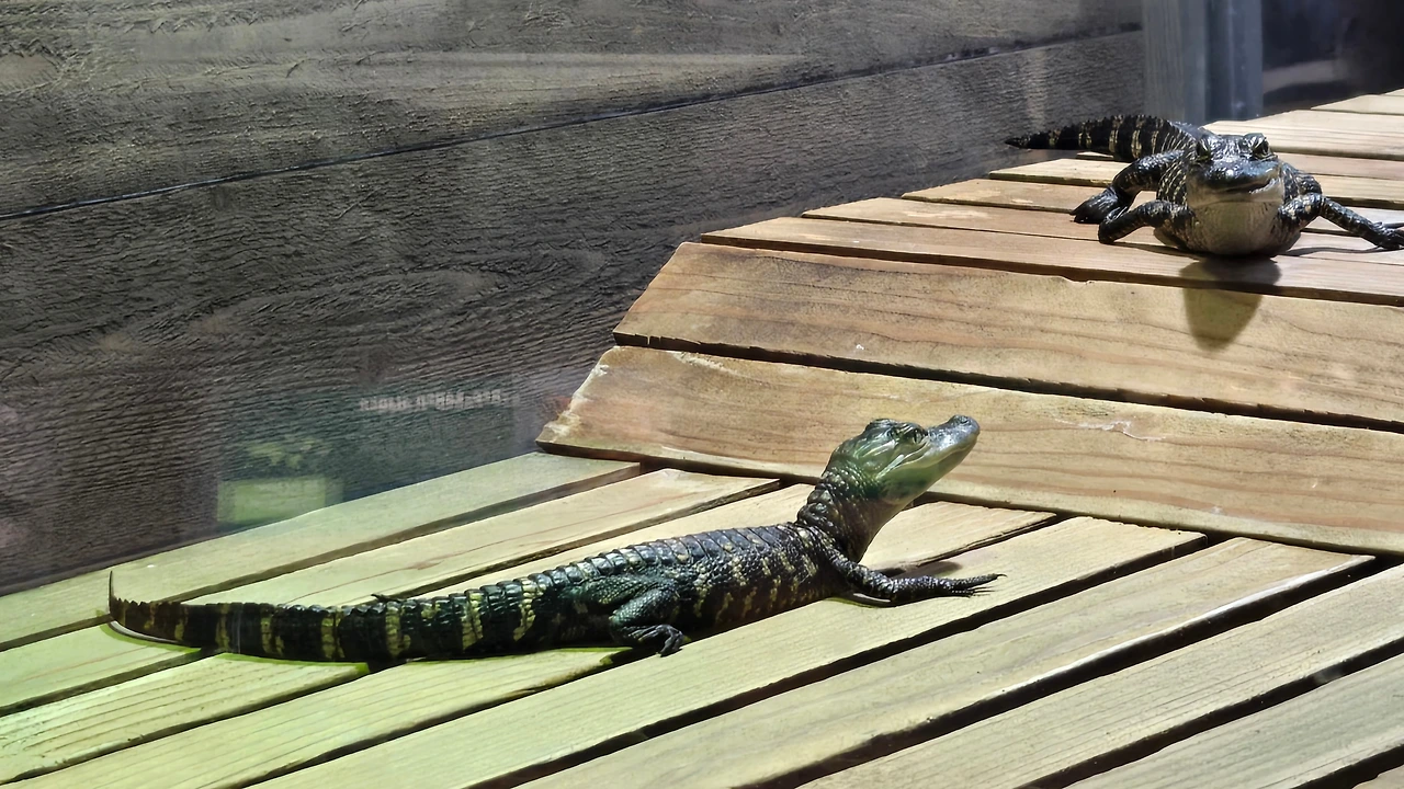 작은 크기의 악어, 그리고 백색증(Albinism-동물이나 사람의 눈, 피부, 머리카락등에서 멜라닌 색소가 합성되지 않는 질병)이란 이유로 무리에서 공격의 대상이 되어버린 앨리게이터가 구조되어 생활하고 있습니다.