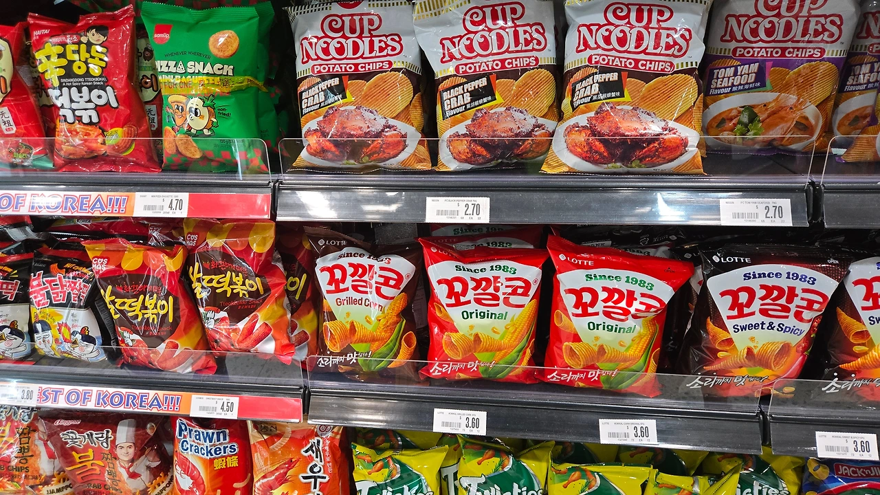 편의점에서 판매 중인 한국 과자들의 반가운 만남은 축복이죠.