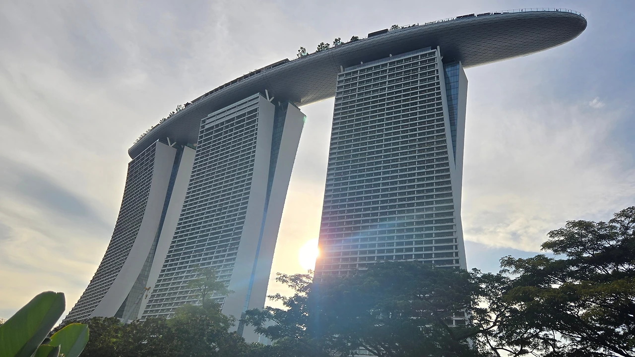 우선 세 개의 건축물 위에 배가 올려져 있는 거 같은 건축물이 마리나 베이 샌즈 복합 리조트입니다.