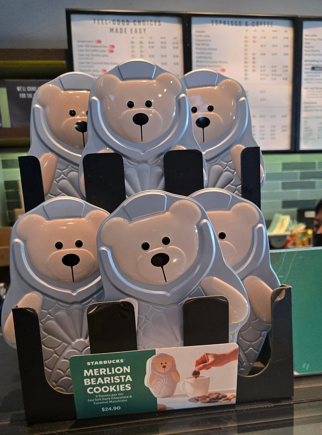 뜨겁고 습한 날씨 덕에 근처 스타벅스를 찾았는데 귀여운 머라이언 캐릭터의 쿠기상자와 지역 특징을 살린 텀블러의 유혹을 잘 참고 사진으로만 담아봤습니다.