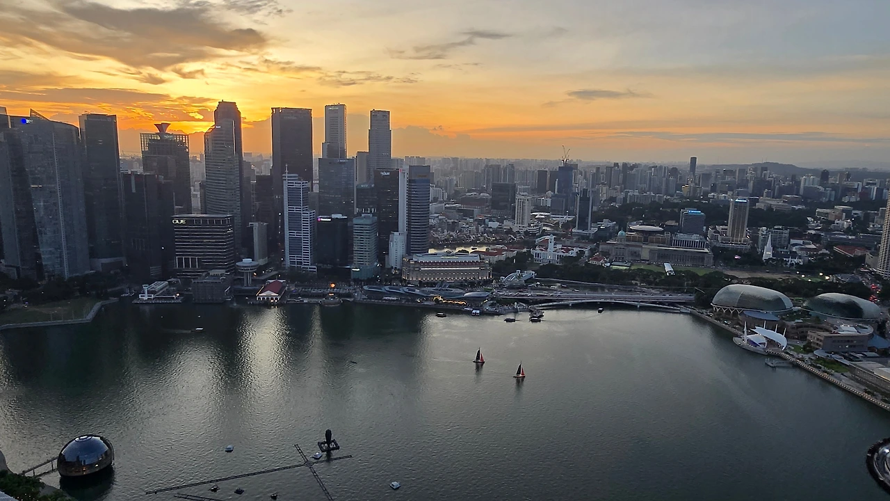 해 질 녘, 도심의 스카이 라인도 멋지고 무역업이 최고인 나라답게 먼바다에 정박해 있는 많은 선박들이 보입니다.