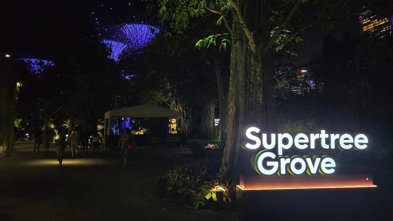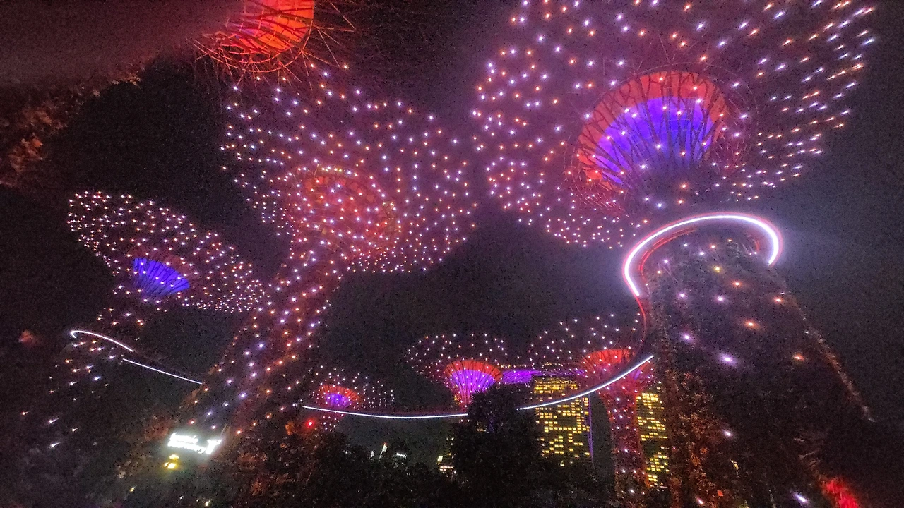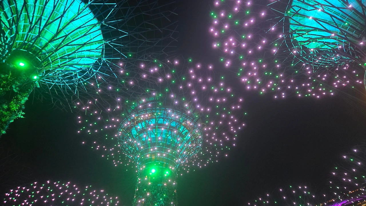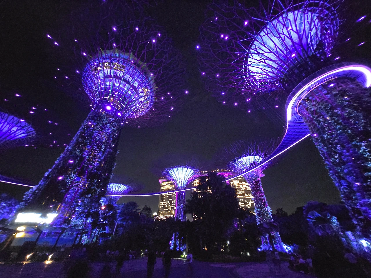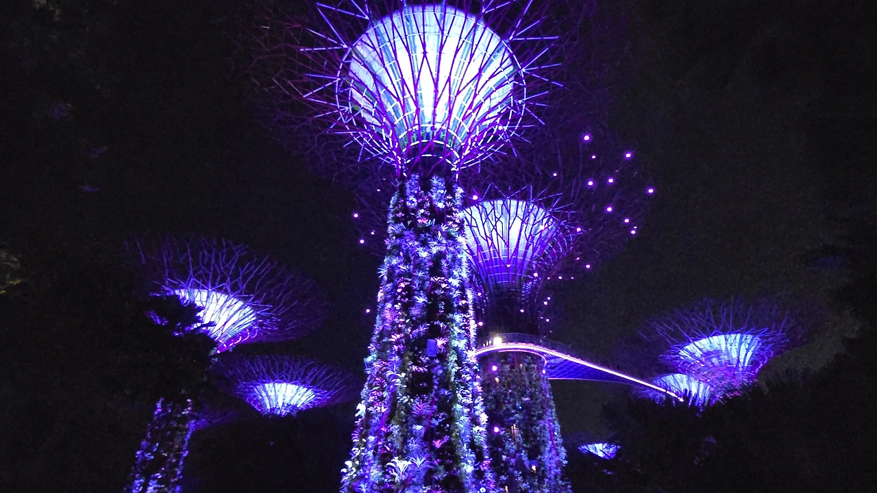 낮에 다녀온 세계 최대의 온실 옆으로 화려한 불빛의 인공 나무들이 보입니다.