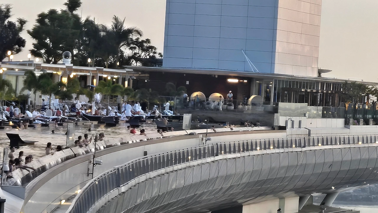 마리나베이 샌즈 호텔은 오성급 호텔로 가장 작은 룸의 가격이 100만 원을 호가하며 그 명성에 맞게 루프탑에 위치한 인피니티 풀은 투숙객만 이용할 수 있습니다.