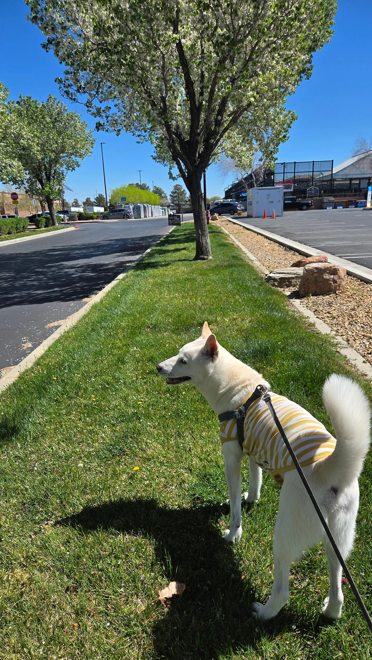 태극이는 산책도 하고 볼 일도 보고, 우리는 점심으로 햄버거도 먹었는데 이 도시는 배나무가 조경수로 심어져 있어 꽃비 날리는 거리를 걸었습니다.