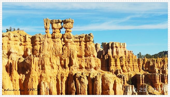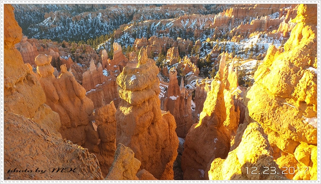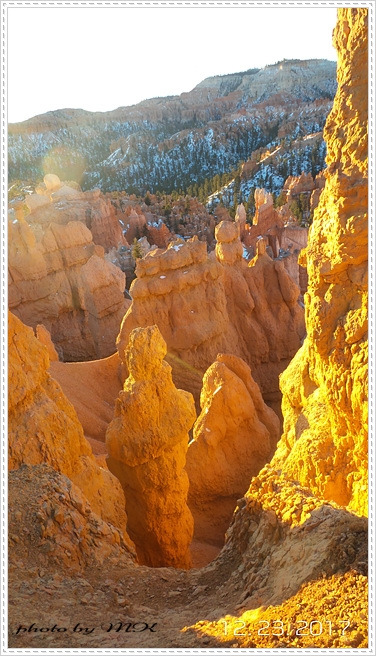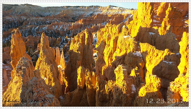 해가 떠오르면 붉은 흙은 황금색으로 변한다. 물론 해가 질 때도 같은 풍경이 만들어진다. 이때를 카메라에 담고 싶은 많은 포토그래퍼들이 이른 시간부터 카메라를 설치하고 대기하고 있다. 만약 브라이스 캐년을 방문할 계획이라면 일출과 일몰시간을 미리 확인하고 가는 것을 적극 권하고 싶다.
