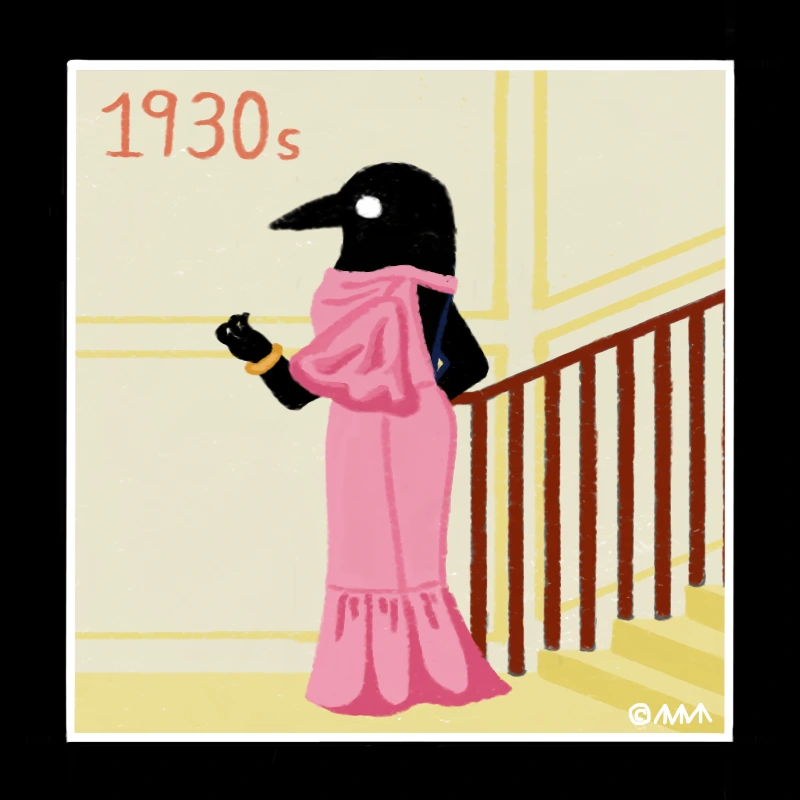 1930년대의 패션은 자본주의 역사상 가장 길고 참담했던 침체기인 대공황과 떼놓을 수 없습니다. 왜냐고요? 불황으로 수많은 실업자가 생겨나면서, 일하는 여성을 가정으로 되돌려 보내려는 움직임이 일어났기 때문입니다. 자연스레 여성의 사회 진출은 어려워질 수밖에 없었고, 여성에게 전통적인 아름다움을 요구하는 복고적 분위기가 형성됩니다. 머리는 길어졌고, 곡선적인 라인이 대세였으며, 치마의 길이도 다시 정강이를 가릴 정도로 늘어났습니다.