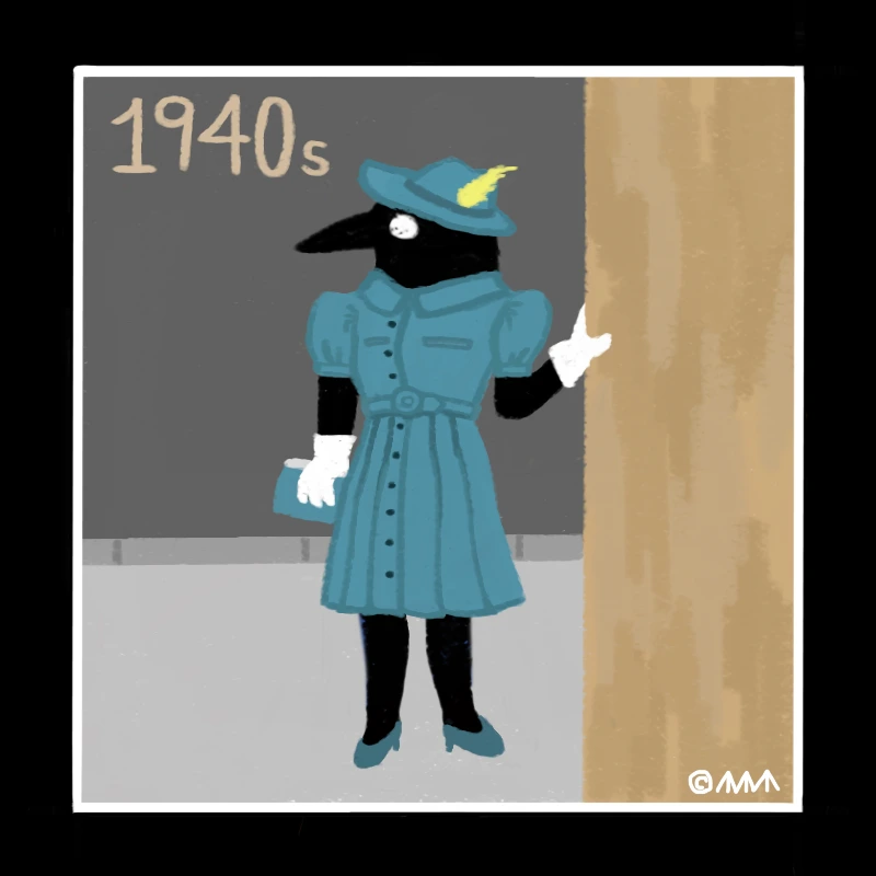 이와 같은 패션은 평화를 되찾은 1945년 이후로 서서히 바뀌게 됩니다. 매일 옷을 입고 거울을 볼 때마다 끔찍했던 전쟁을 되새기고 싶은 사람은 없었을 테니까요. 새로운 유행에 대해서는 1950년대를 다루면서 함께 이야기해보려 합니다.