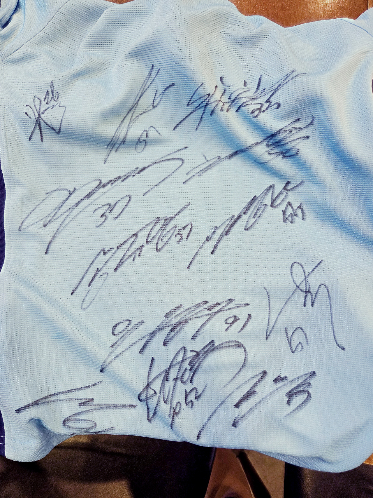 12명의 선수 사인이 빼곡한 유니폼을 입고 위풍당당하게.