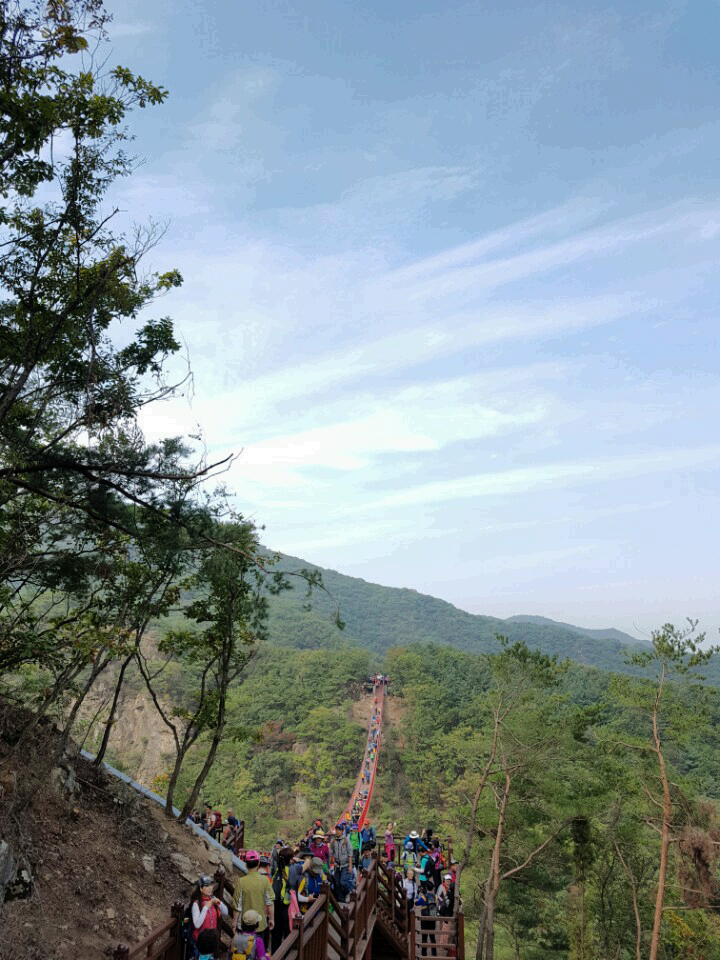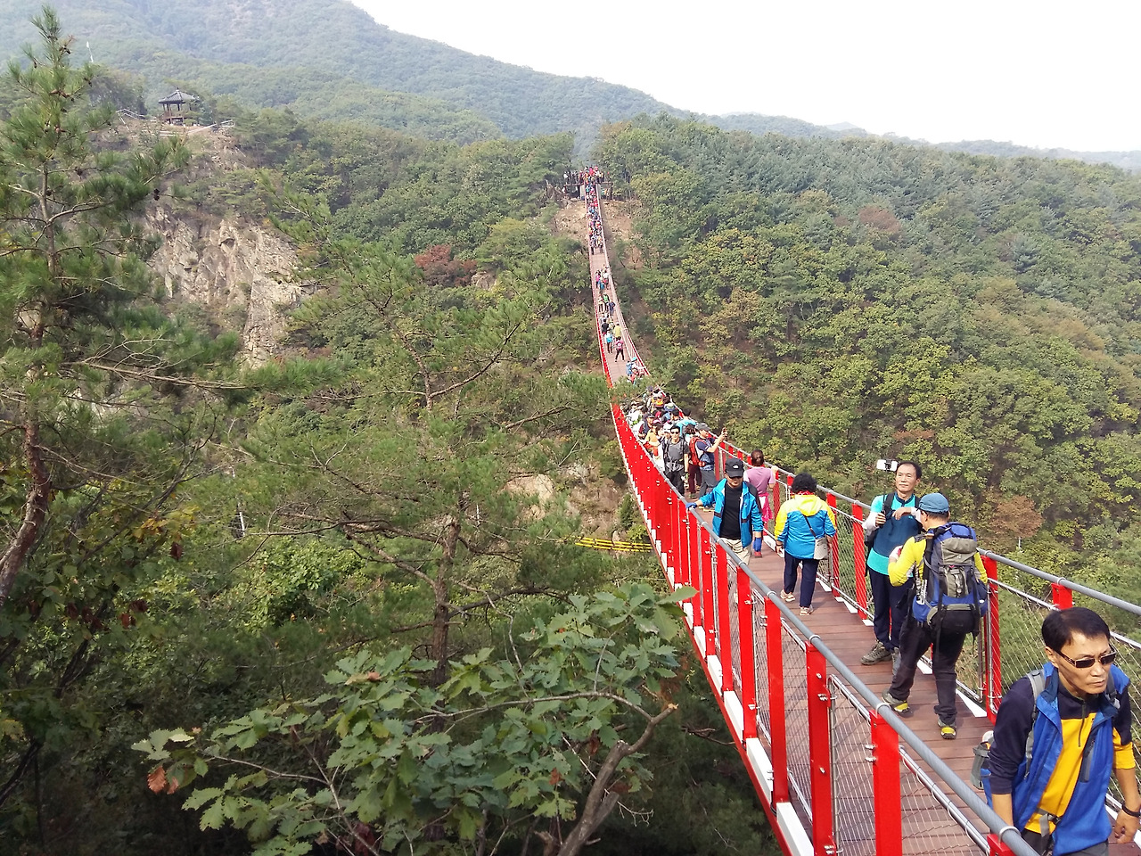 며칠 전 감악산 출렁다리가 임시로 개통됐다는 뉴스를 보았다. 산악 현수교로는 국내에서 가장 긴 다리로 길이 150m, 폭 1.5m 규모의 신공법에 의해 설치되어 몸무게 70kg 성인 900명이 동시에 통행할 수 있도록 설계된 다리이다.