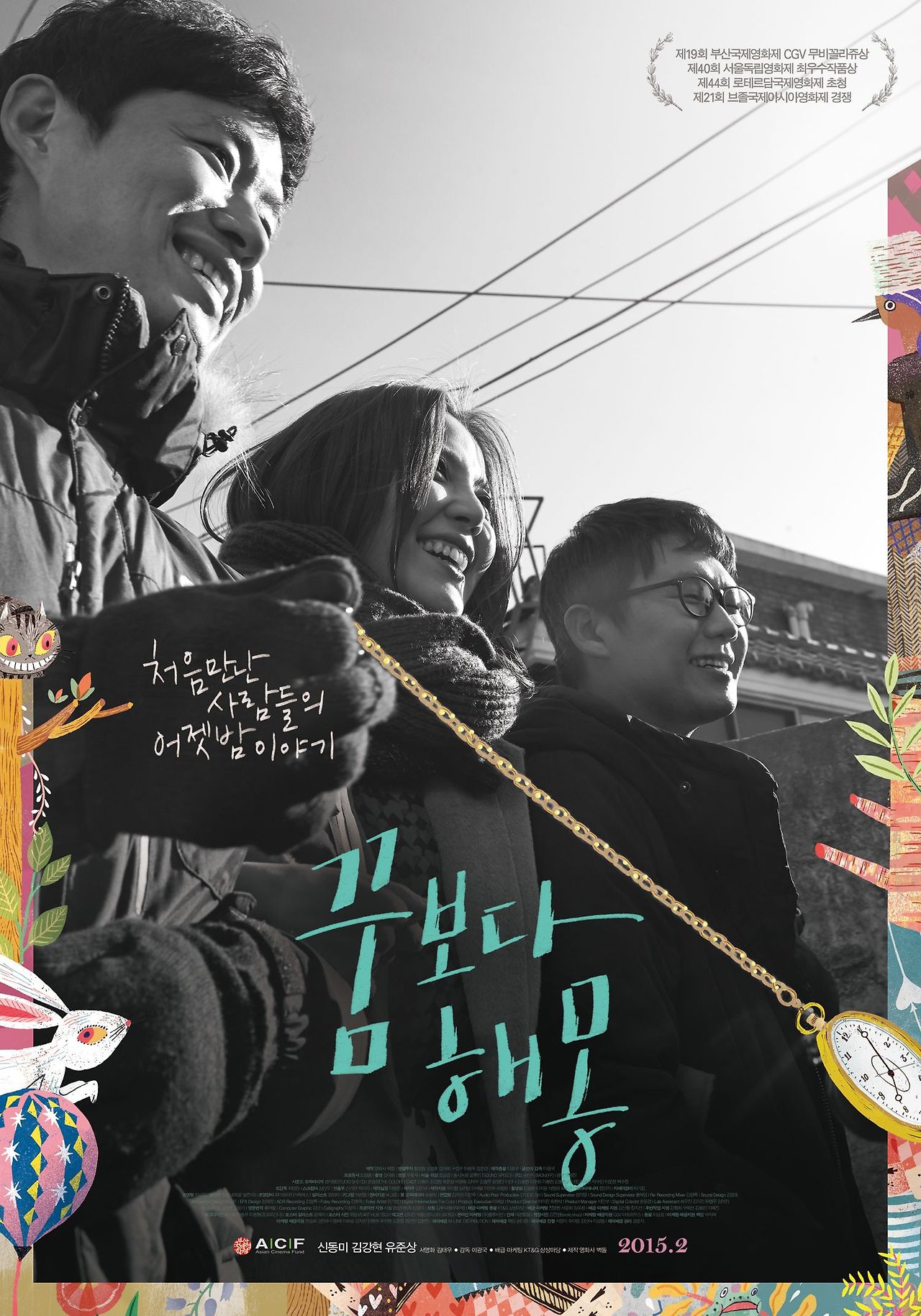 <꿈보다 해몽> 속 사람들은 자신의 꿈과 과거 그리고 문득 떠오르는 생각을 쉴 새 없이 이야기한다. 현실감이 현저히 떨어져보이는 영화 속 세 명의 인물들은 마치 고전적 화법으로 만든 문학적 실체처럼 보이기도 한다. 공원에서, 차 트렁크 앞에서, 동네 놀이터 등 장소에 구애받지 않고 자신이 생각한 이야기를 펼쳐 놓는다. 현실세계의 속된 이야기를 벗어내고, 흥미로운 이야기에 온 정신을 집중한다. 자세를 고쳐 잡고 대책 없는 헤피엔딩을 꿈꾼다. 결국 현실의 무게를 이길 힘이 없어 이야기에 몰입하는 엘리스가 된 기분이다. 영화는 묻는다. 관객 없이 연극을 하는 극단의 사람들과 꿈을 포기하고 회사를 다니는 남자, 능력은 없지만 해몽은 할 줄 아는 형사 그리고 이 영화의 배경이 된 대학로에서 누군가에게 이야기를 들려주기 위해 삶을 살고있는 젊은 예술인들까지 과연 의미가 있는 거냐고. 이야기가 아직도 당신을 구원할 수 있다고 믿느냐고. 감독과 배우들이 만든 이 절절한 질문이 날 뭉클한 마음으로 이끌었다. 영화 <꿈보다 해몽>은 한 눈에 봐도 저예산과 짧은 촬영기간, 적은 스텝들의 노고가 모여 만들어진 작은 소품집처럼 보이지만, 말하고자 하는 바가 뚜렷해 시종일관 흥미롭게 관람할 수 있었다.