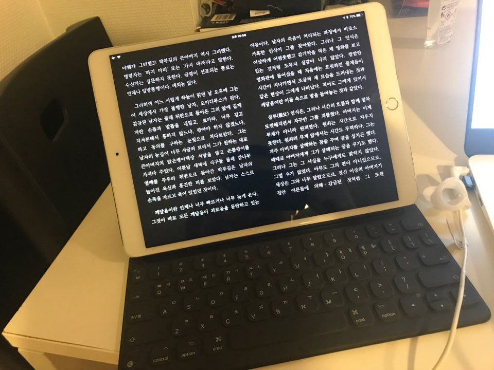 신기한 건 시간이 어찌나 느리게 흐르던지, 행복함과 시간이 반비례일 수도 있음을 처음 느낀 셈이다. 그로 인해 10년 넘게 붙잡고 있던 블로그를 잊고 살았으며, 하루에 몇 번씩 보던 거울과 이별했다. 집에 돌아오면 씻고 침대로 들어가기 바빴으니까. 이런 와중에도 한국에 있던 때와 다르지 않은 것이 한 가지 있다면 그건 독서다.