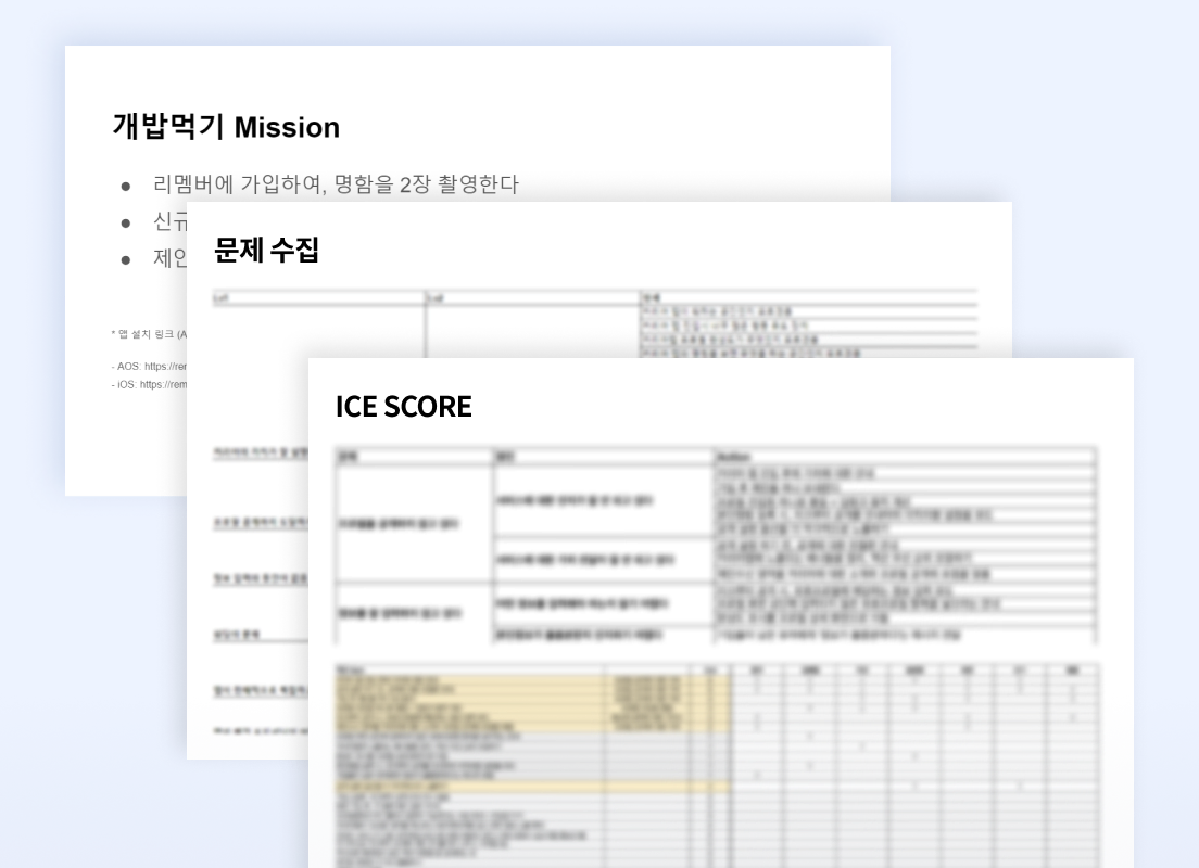 각각의 액션 아이템은 크루원들과의 논의를 거쳐 구체화하는 과정을 거쳤습니다. 그 과정에서 가설을 검증하는데에 있어 필요한 최소 스펙들을 재검토하는 과정을 여러번 거쳤고, 오버 스펙이라 분류된 스펙은 과감히 범위(scope)에서 제외했습니다.