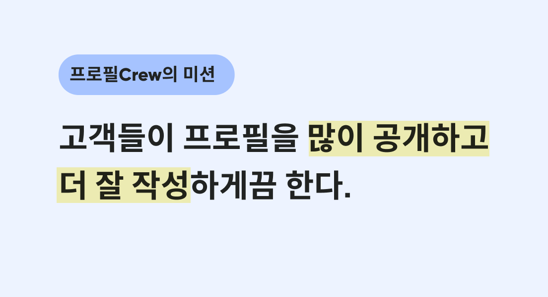 리멤버의 여러 사일로 조직 중, 프로필 크루의 목표는 커리어 서비스를 사용하는 고객들이 프로필을 많이 공개하고 더 잘 작성하게끔 하는 것이었습니다.