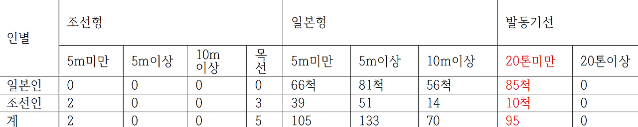 조선과 일본의 어업에서 가장 차이가 나는 부분은 기계와 동력 사용의 유무이다. 이 두 가지 조건이 구비되면, 대규모 어업으로 가는 것이고 그렇지 못하면 영세한 수준에 머물러야 했다. 예를 들어,1931년 당시 많이 잡히던 고등어는 기선유망어업이 많았다. 경주군내 어업에 사용되는 어선은 1931년 현재 426척인데, 그 대부분은 일본식 발동기선이었다. 아래 표에 있듯이 대규모 조업을 할 수 있는 20톤급 발동기선은 일본인이 85척, 조선인은 겨우 10척이었다. 감포 앞바다는 일본인들에 의해 장악되었다.