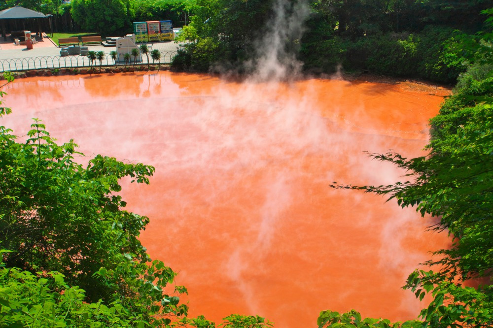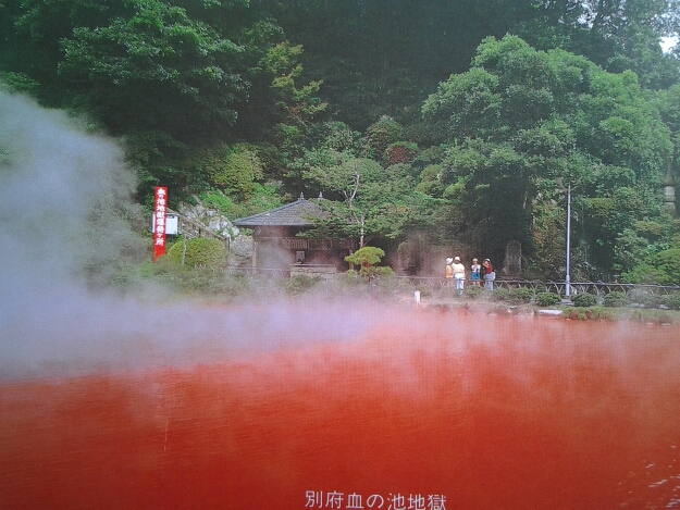 - 지고쿠 온천은 피의 연못 온천이라고 불리고 있다. 붉은색 때문인지. 철 산화물에 의한 붉은 색깔을 더불어 평균 78도에 달하는 물의 온도로 과거 살인자들을 산채로 집어넣어 고문하던 곳이라는 말도 있음