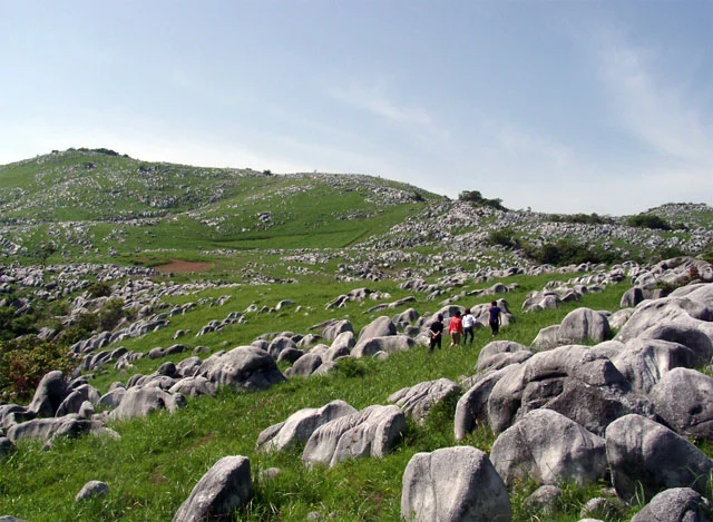 - 대지의 지하에 강이 흐르는 센부쓰종유동굴 등이 있어 독특한 카르스트 지형을 형성