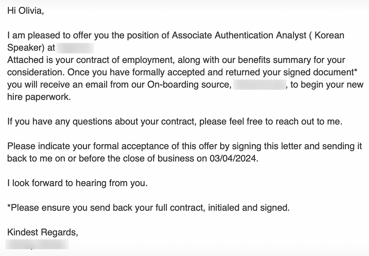 나의 경우엔 한국인 매니저 분께서 연락이 왔다.