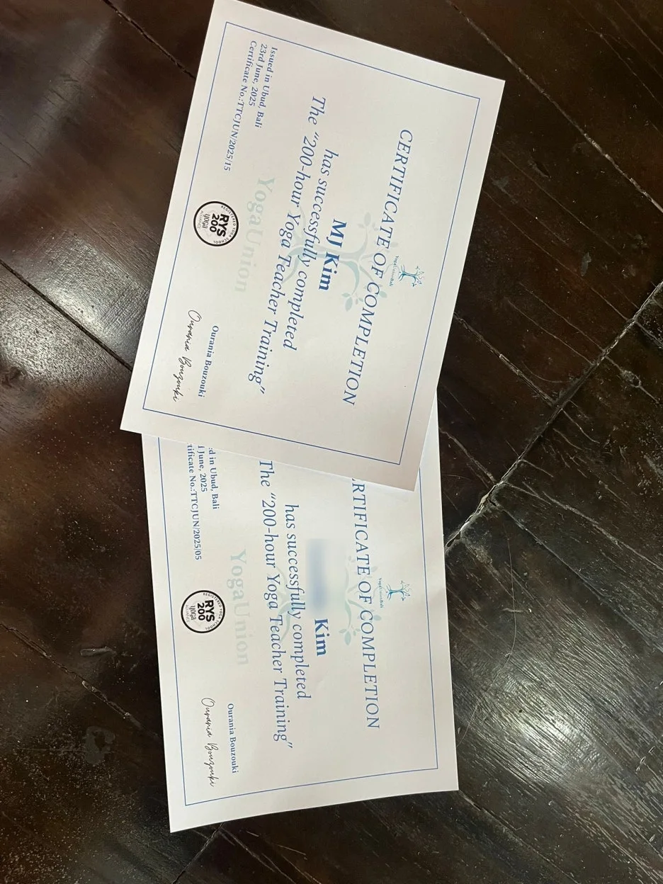 과연 3주 만에 요가 강사가 될 수 있을까. 어쩌면 실력과 상관없이 따라가기만 한다면 돈 주고 얻을 수 있는 자격증일 뿐이기도 하다. 과정에서 이제 더 이상 내게 요가는 없을 것 같다고 말할 정도로 쉽지 않기도 했지만, 손꼽는 나의 취미가 된 요가를 더 잘하고 싶게 된 계기가 되었다.