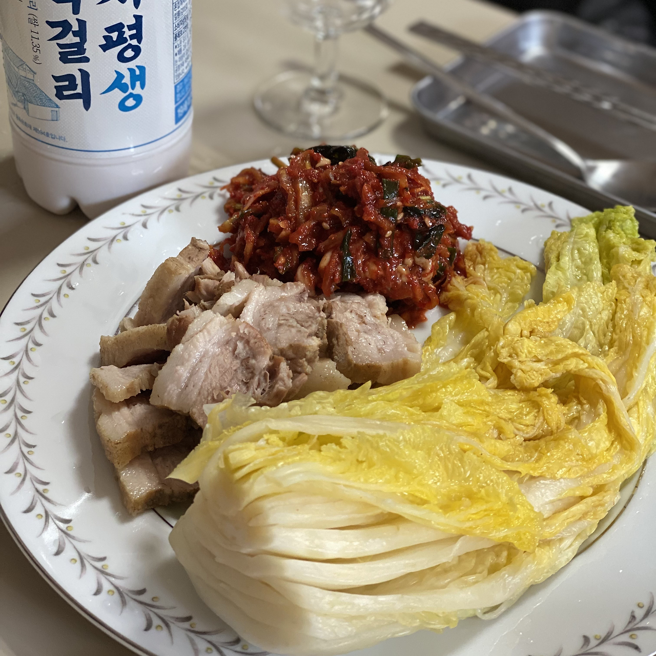 김장김치는 바로 한 후에 익지 않았을 때도 바로 익었을 때도 맛있다. 싱싱한 굴과 함께 하면 좋다. 수육을 삶아간 날 친구가 홍합탕, 대하, 피조개를 삶아줬는데 겨울을 제대로 즐긴 기분이 들었다. 함께 마시는 술은 무엇이 좋을까. 막걸리나 전통주가 역시 좋겠지만 이번에 꼬냑을 함께 마셔봤다. 알싸한 꼬냑을 한모금 입에 머금고 수육을 먹어보니 페어링이 나쁘지 않다. 그러고보니 최자로드에 막걸리와 위스키를 섞어 마시던데. 다음에는 도전해 봐야겠다. 이 계절의 축복을 즐겨야 할 때. 오늘도 수육을 삶아볼까.