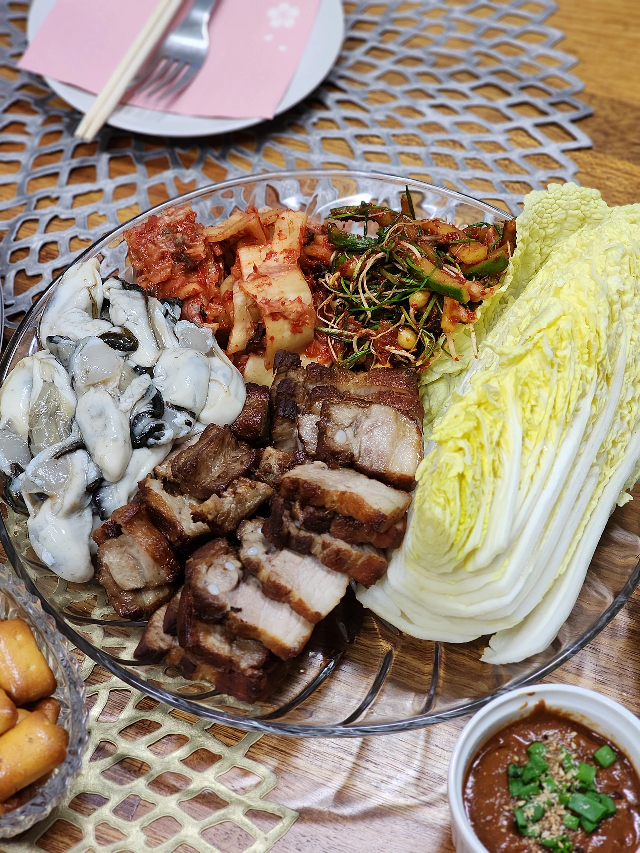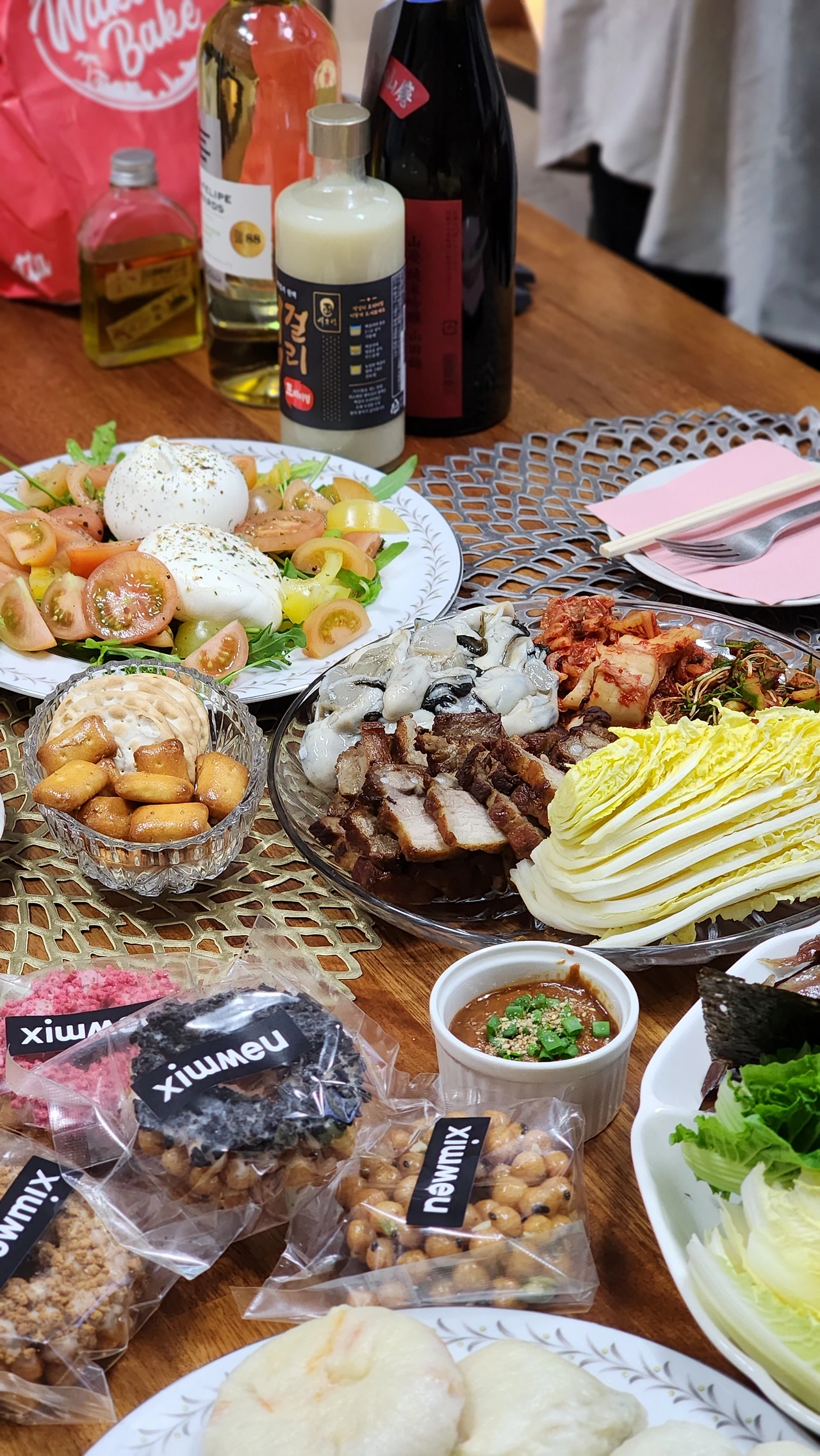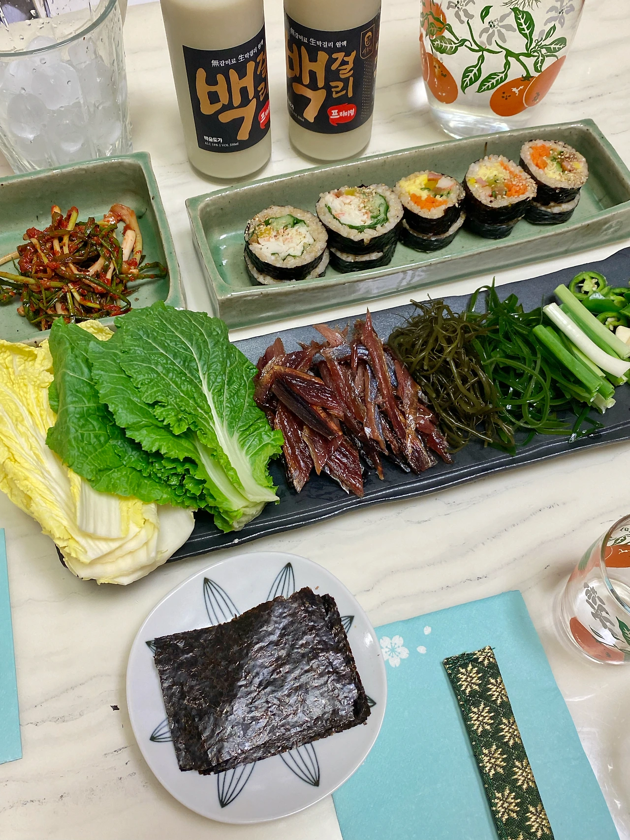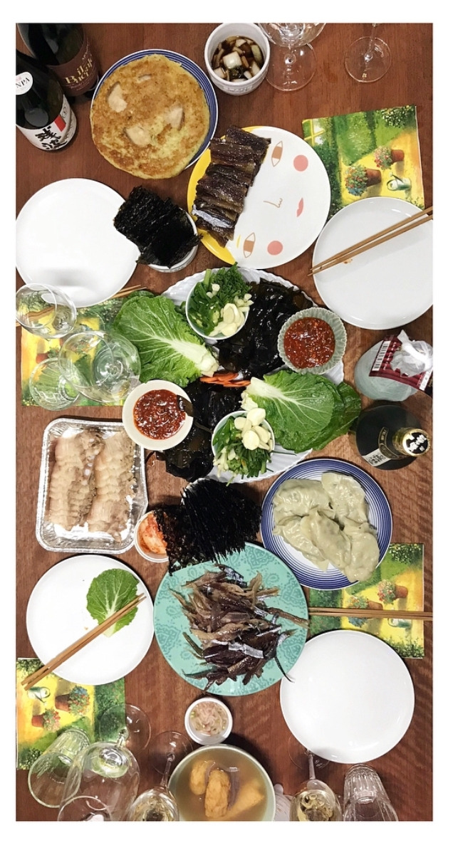 지난주에 이번 겨울 마지막 과메기 파티라는 명목으로 친구들과 과메기를 주문했다. 과메기는 알배추, 봄동, 꼬시래기, 해초, 쪽파, 마늘, 고추, 김, 초고추장과 함께 도착했다. 과메기를 즐기지 않는 친구를 위해서 역시나 마지막이 될 수 있을 굴을 준비하고 그에 어울리는 메뉴를 고민하다 수육을 준비했다. 곁들임으로는 이제 익어서 맛이 제대로 들은 김장 김치, 봄이 느껴지는 새콤 매콤한 달래 오이 무침, 씹으면 물이 탁 터지는 고소한 알배추를 함께 준비했다. 겨울과 봄이 함께 느껴지는 겨울에서 봄으로 가는 이 환절기를 제대로 느낄 수 있는 술상이었다.