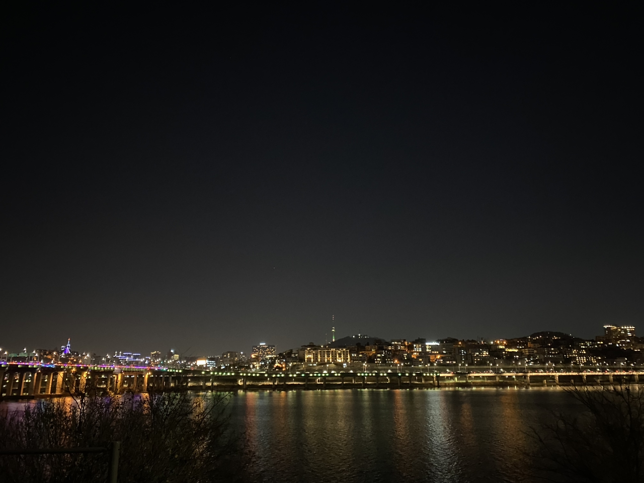 한남대교 아래로 알록달록한 불빛이 아름답다. 어디를 가든 남산타워를 먼저 찾는 나. 밤의 남산타워는 역시나 눈에 띄고 예쁘다.