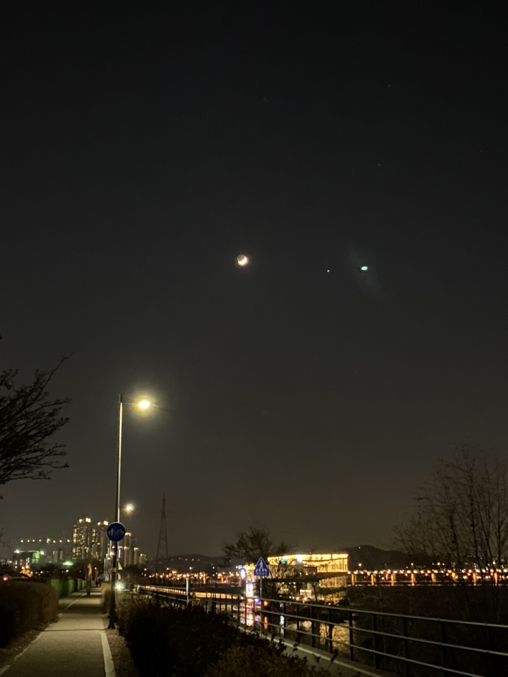 초승달이 예뻐서 사진을 찍었는데, 흔들렸네요 헤헷.