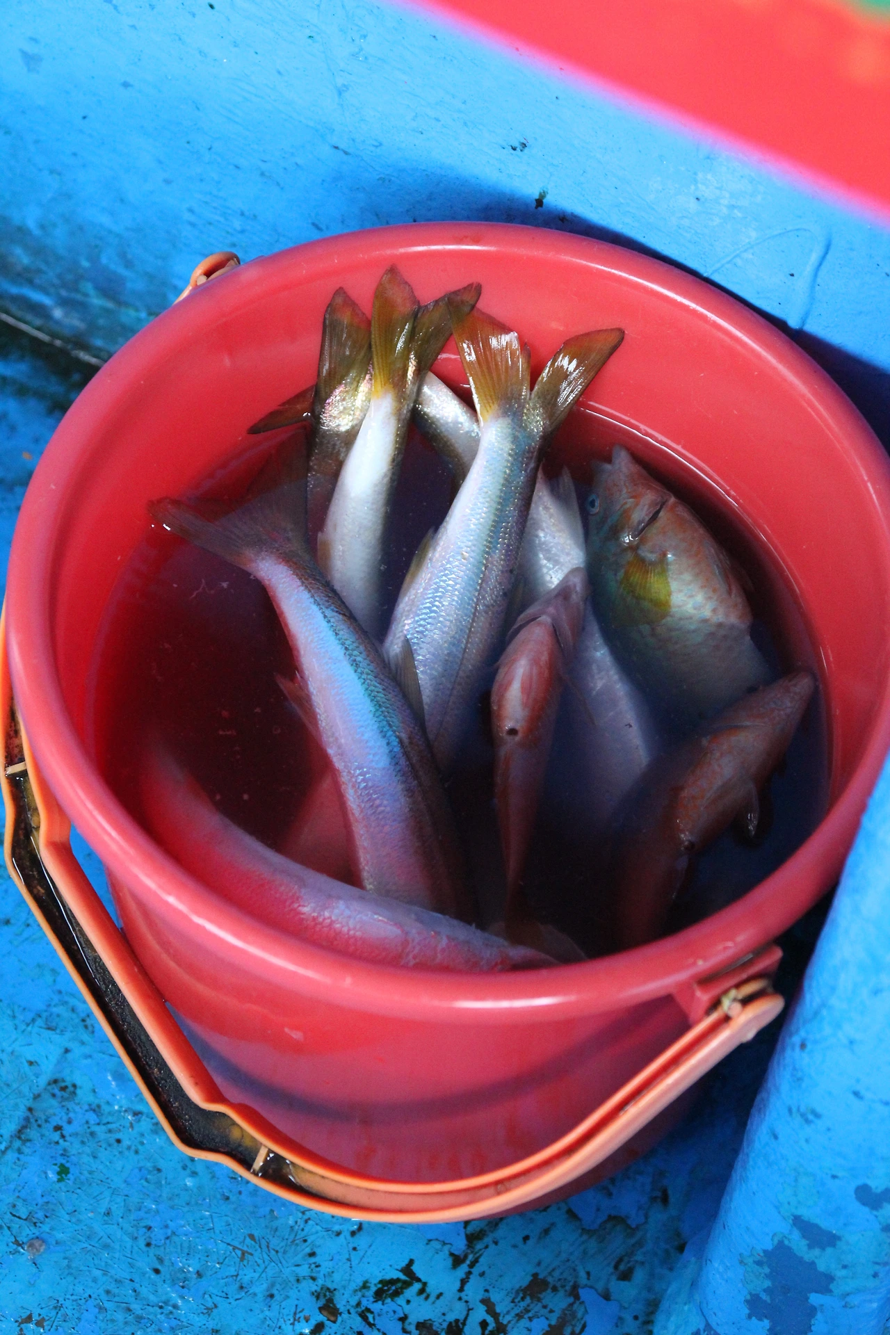낚시 바늘에 걸린 물고기가 미끼만 먹고 낚싯줄을 끊고 도망치지 일도 빈번해서 그러지 않기 위해서는 끌어올려주는 타이밍이 중요하다. 그렇게 잘 올린 물고기를 낚시 바늘에서 꺼내는 것도 일인데, 사촌과 동생이 모두 질색팔색을 했기에, 우리 일행의 모든 물고기를 빼내는 일은 내 몫이 되었다. 평소 나는 징그러운 것을 싫어하고 비위도 그리 강하지 않은 편인데, 평소 요리를 좋아하고 식자재를 만져봐서 그런지 그것도 생선이라고 잡는 것에 큰 거부감이 들거나 겁이 나지 않아서 다행히 잘 빼낼 수 있었다. 그렇다고 아주 쉬운 것은 아니라 두꺼운 목장갑 사이로 느껴지는 물고기의 파닥 거림, 입 안에 걸린 낚시 바늘에 괴로워하는 것이 느껴져서 나 역시 조금 괴로웠다. 잡은 물고기들이 물고기가 크지는 않은 것이 오히려 다행이었다.