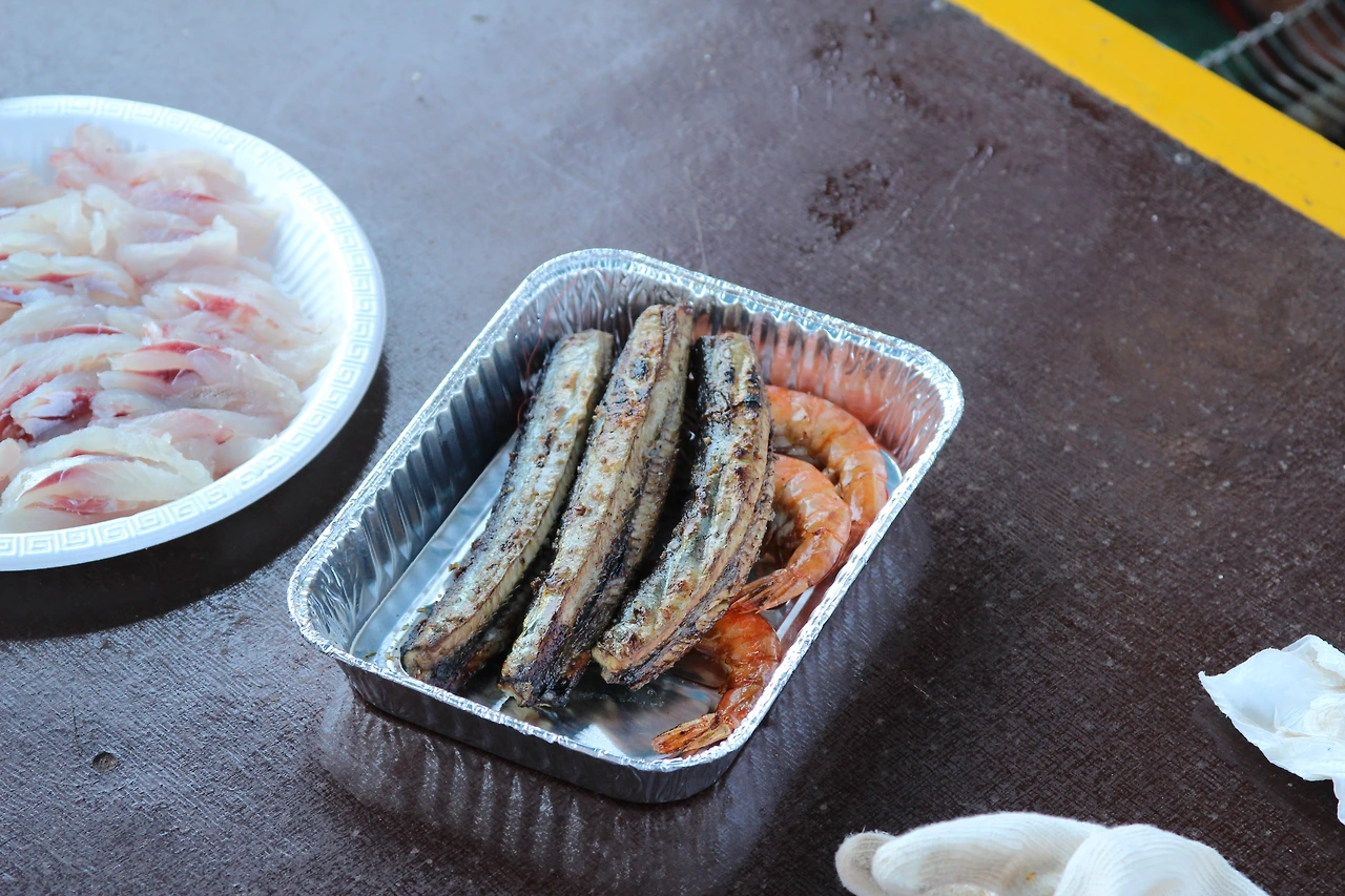 우리가 잡은 생선들은 선장님이 회를 뜨고 구워주셨다. 새우에 돼지고기까지 준비한 것들을 함께 주시면서, 물고기를 너무 많이 잡아서 가지고 가겠냐 물었지만 더 이상의 활용에 자신이 없던 우리는 기꺼이 다음에 고기를 잡지 못할 사람들을 위해 기부했다. 세 시간이 채 되지 않았던 길지 않지만 인상적인 시간이 끝났다. 배는 차귀도의 선박장에 도착했고, 우리와 같이 출발한 다른 배들도 하나둘씩 돌아왔다. 평화로운 오후였다.