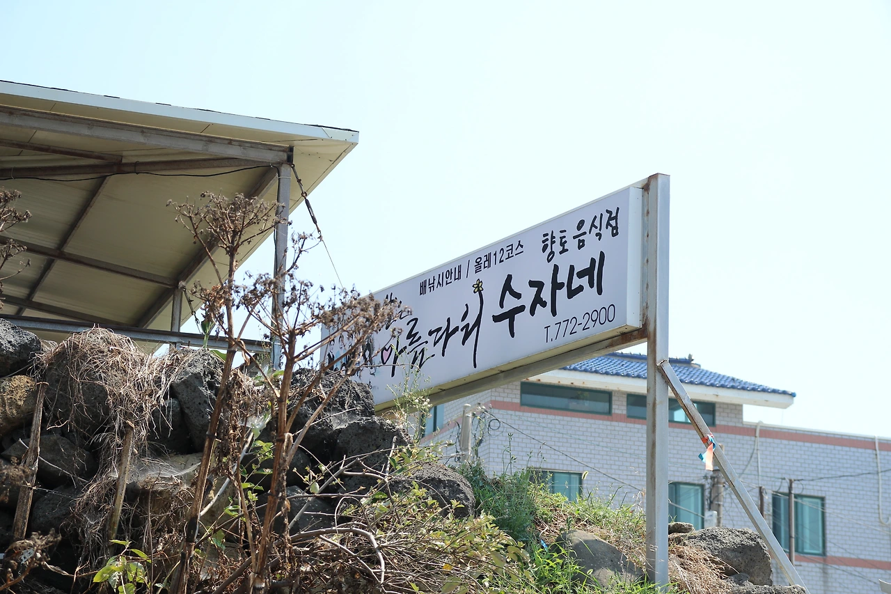 바다낚시를 하기 위해 향한 곳은 차귀도였다. 그때 당시 제주도를 배경으로 한 김수현 작가의 드라마 <인생은 아름다워>가 방송을 했었는데, 그때 조미령 씨가 연기한 수자네 식당이 바로 그곳에 있었다. 예약한 때까지 조금 시간이 남아서 식당 사진도 찍고 동네 풍경도 찍으면서 여유롭게 호명되기를 기다리고 있었다.
